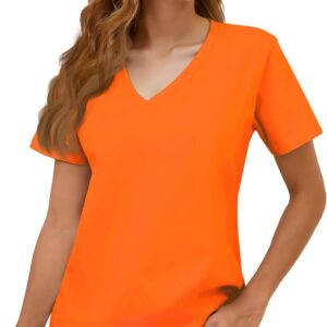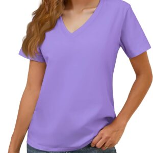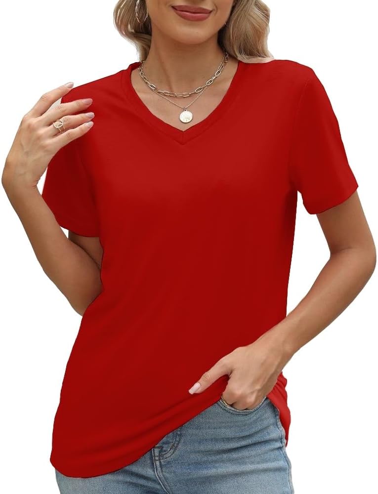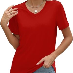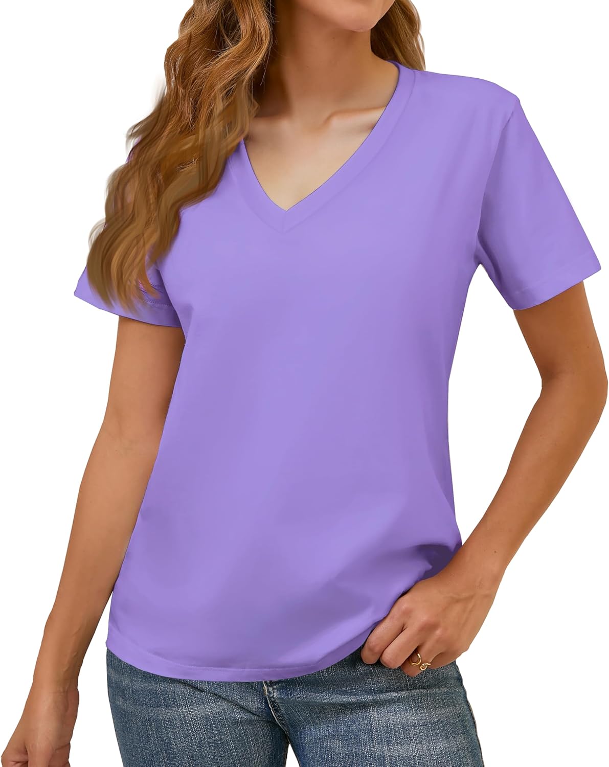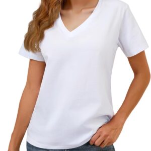 100% Cotton V Neck Short Sleeve T Shirts for Women, Plain T-Shirt,Basic Tees