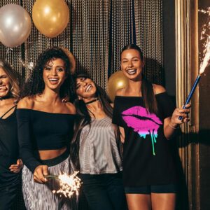 Give the gift of fashion with GEROPHOR Lip Print T-Shirt – perfect for the woman who loves to dress up for Halloween or 80s themed parties.