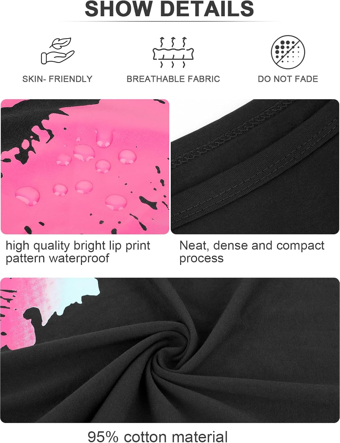 - Unleash your inner fashionista and rock the 80s look with GEROPHOR Lip Print T-Shirt, black simplicity, and bright, colorful lip pattern. Get ready to dance the night away in style!