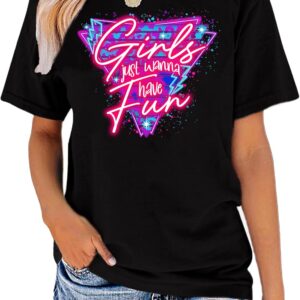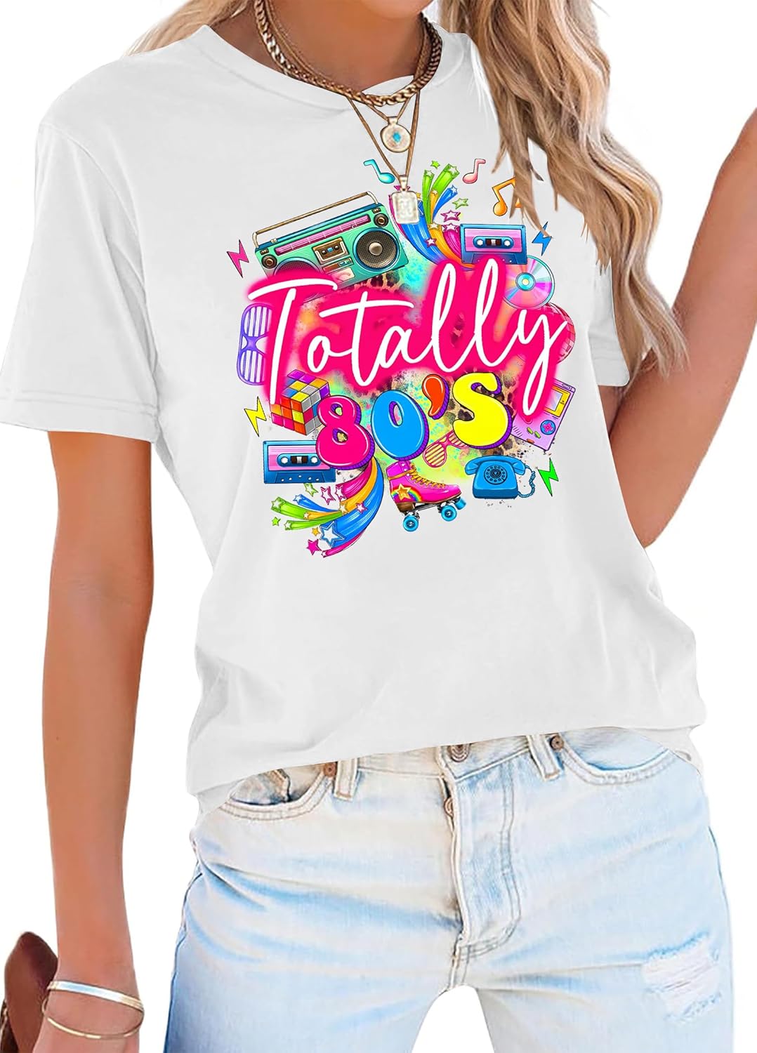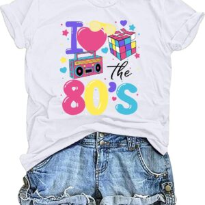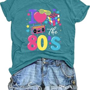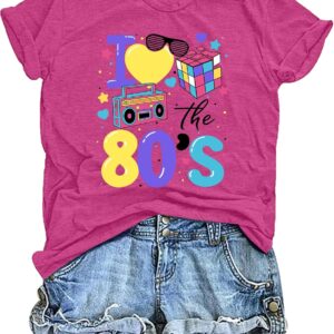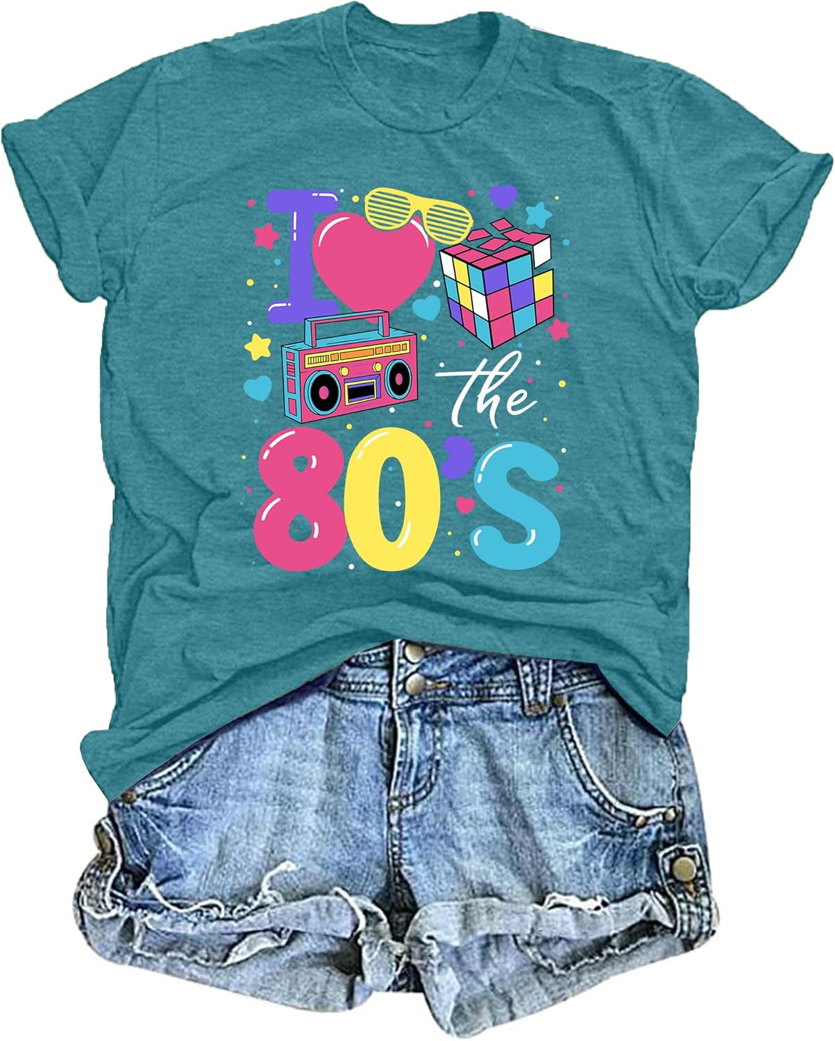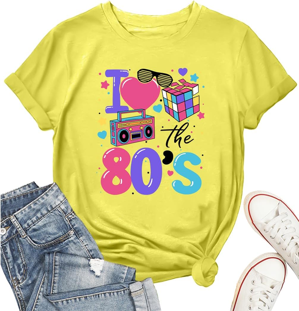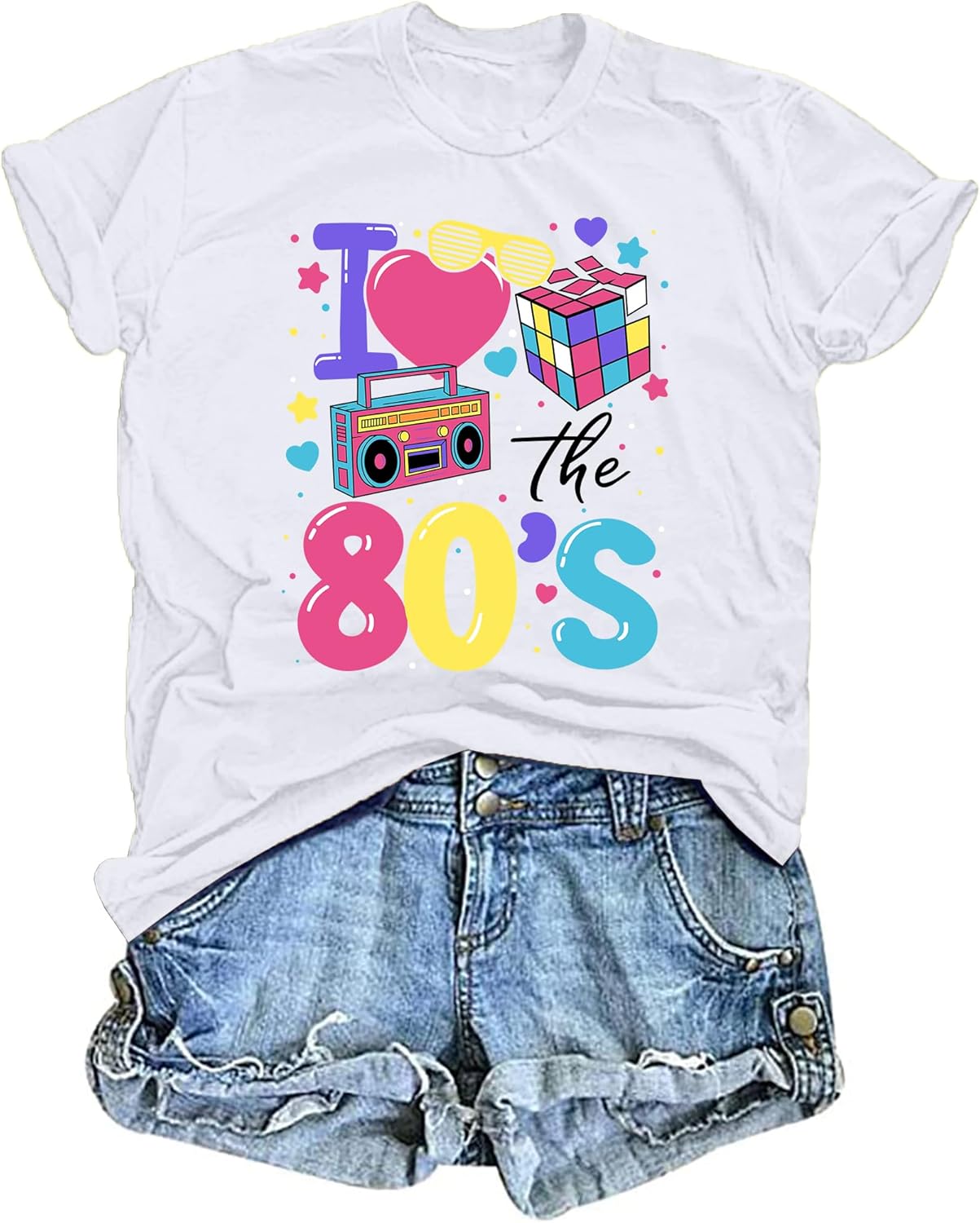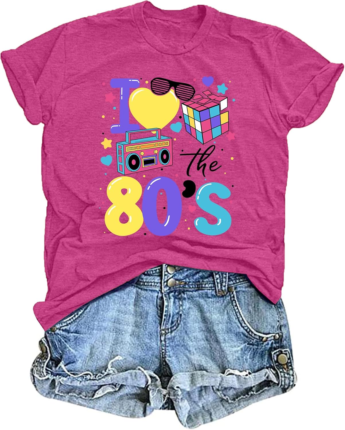 Women 80'S Short Sleeve Shirt Vintage 80's Theme Party Shirts for Women