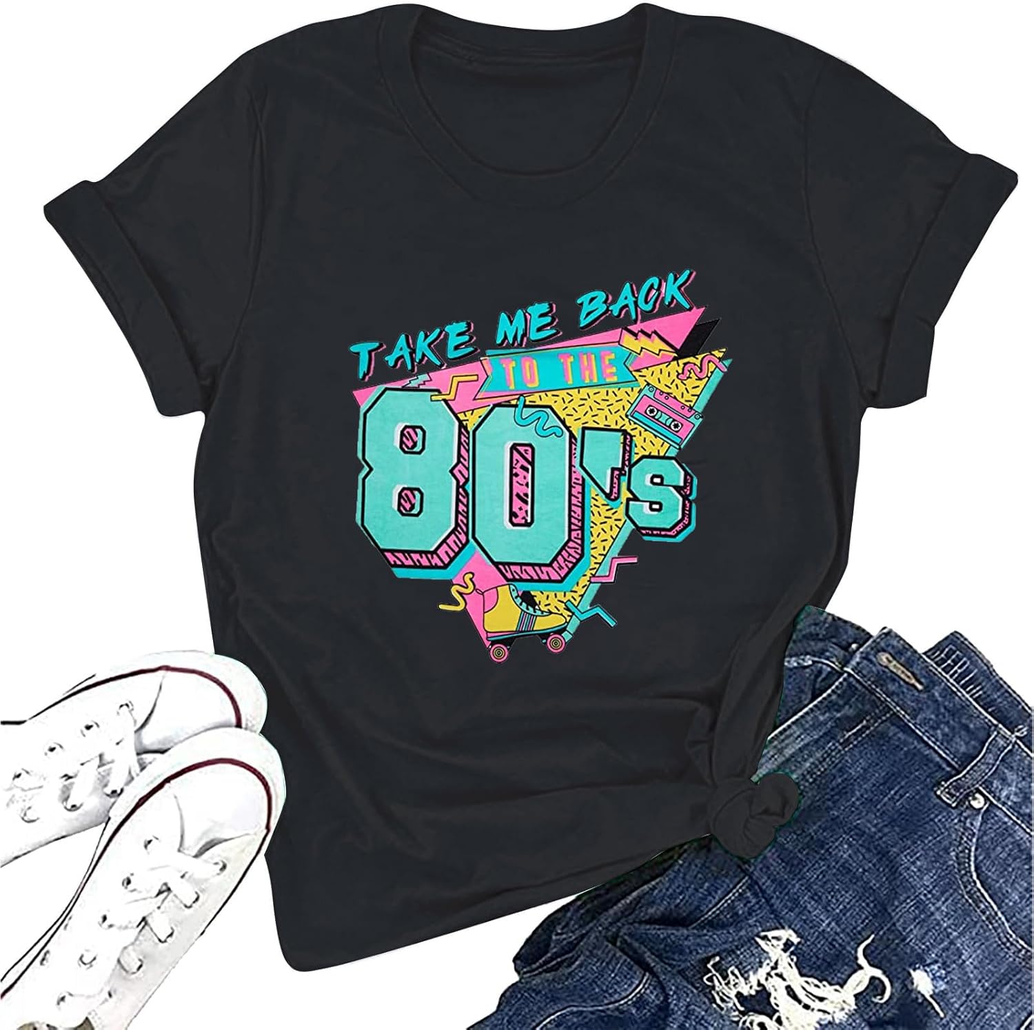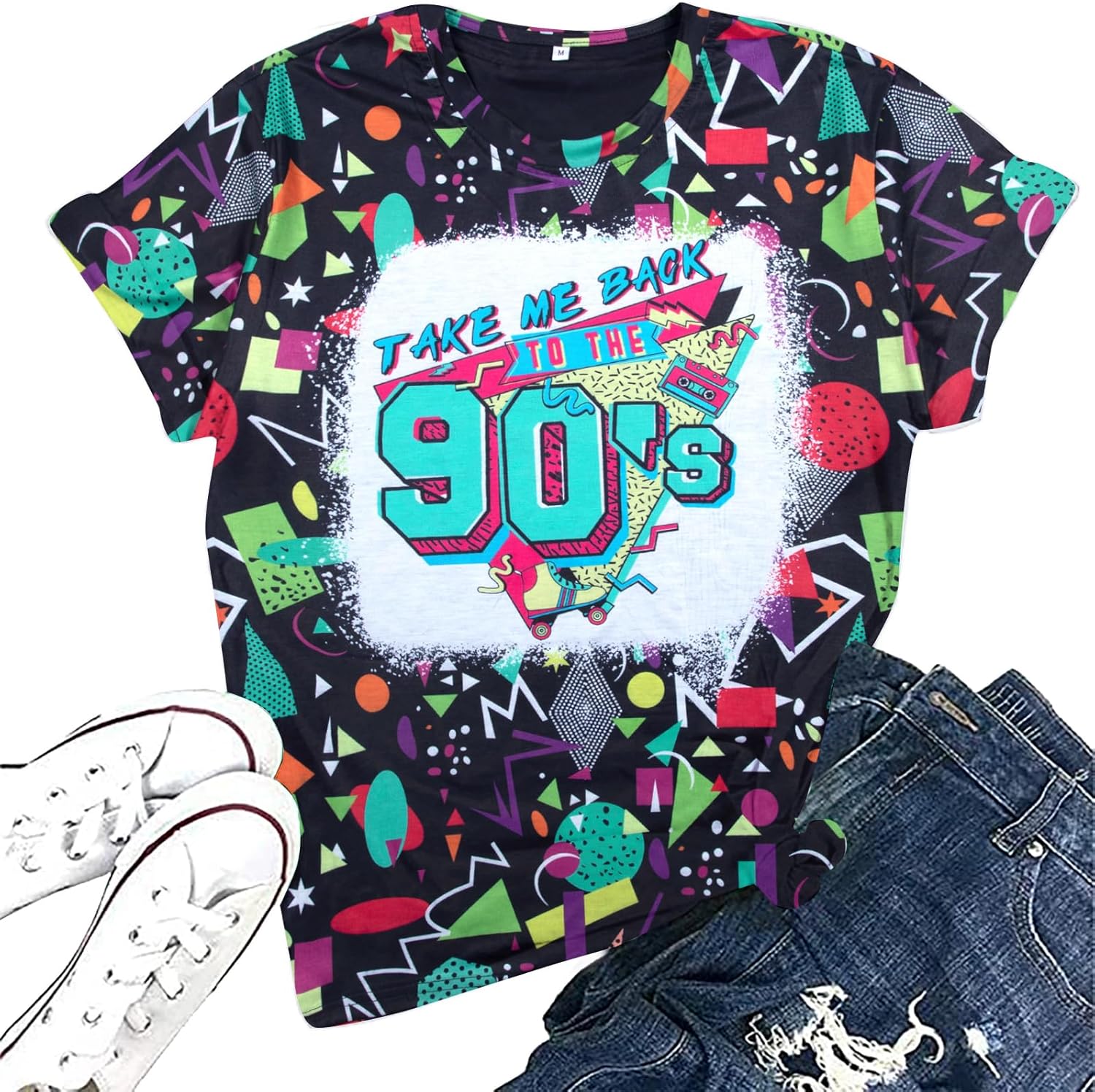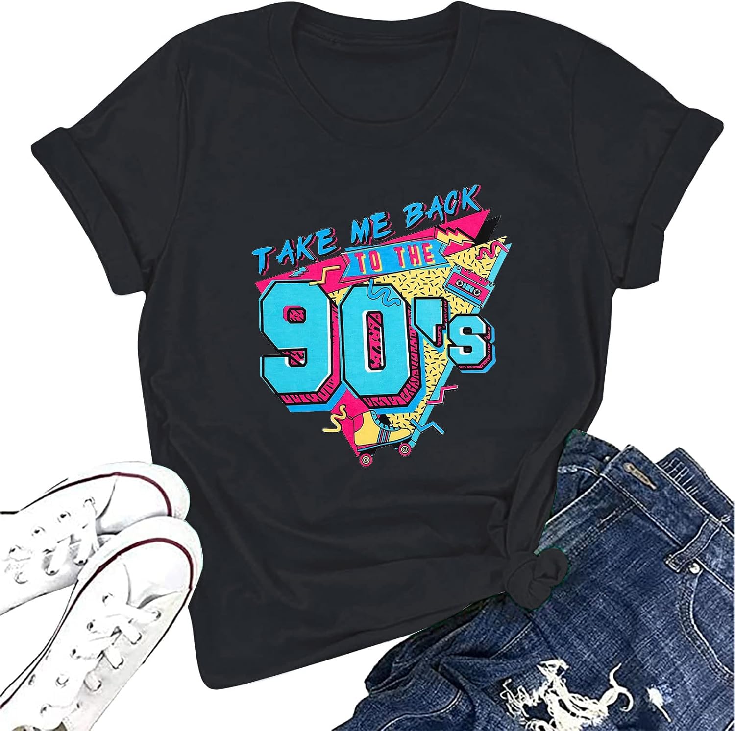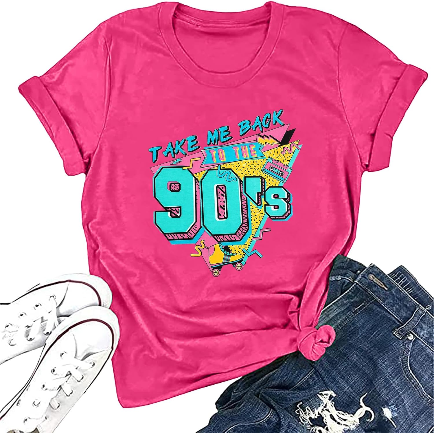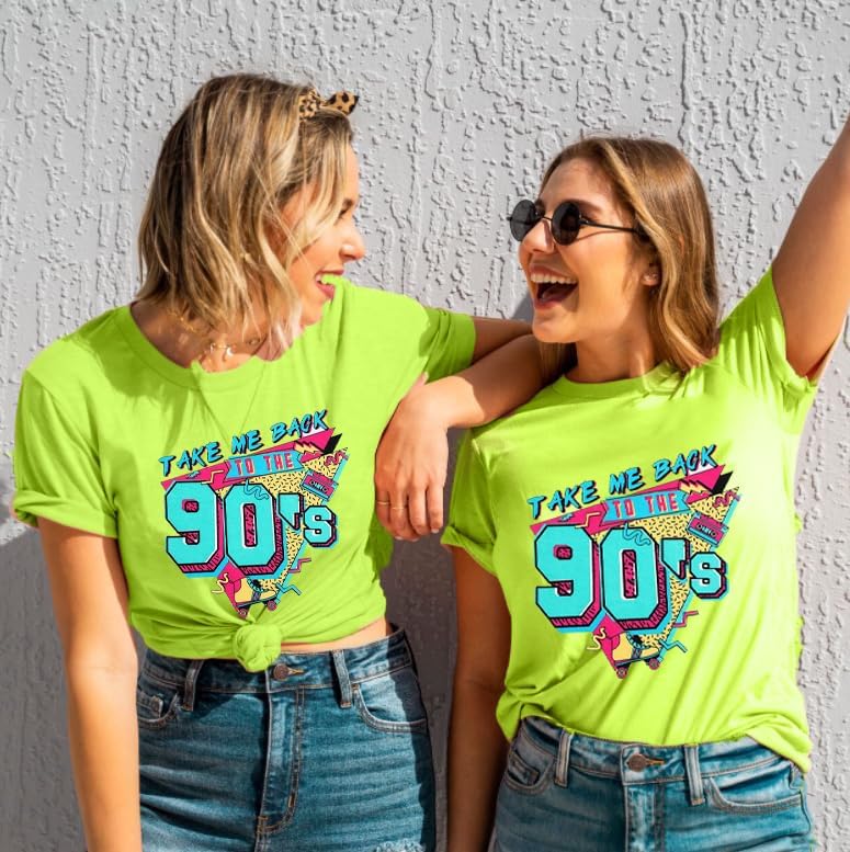 90s Outfit for Women Take Me Back to The 90’s Shirt Vintage Neon Crew Neck Tops Tee for Birthday Party Gift