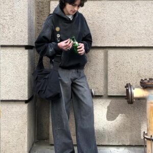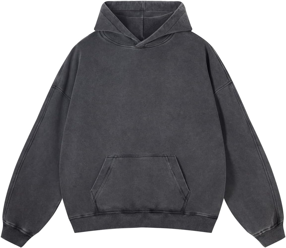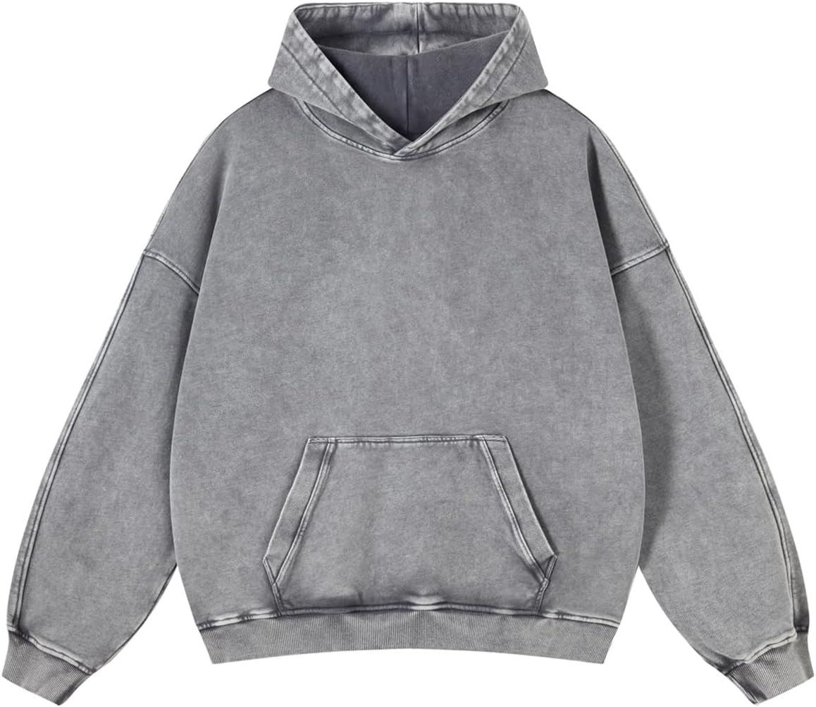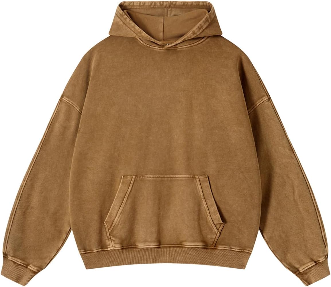 Adenorah Mens Oversized Hoodies Pullover Women Fall Acid Wash Plain Preppy Hoodie Streetwear Cotton Vintage Hooded Sweatshirt