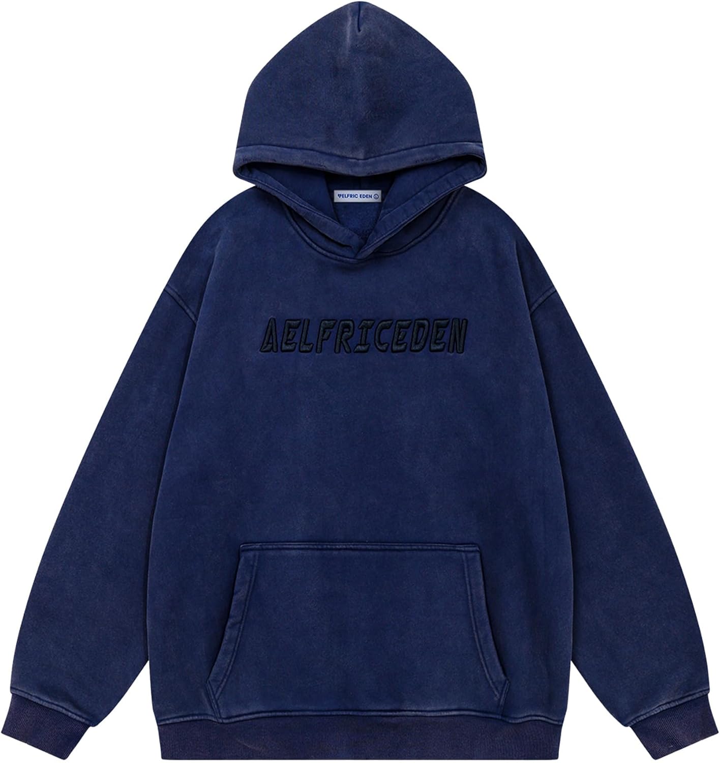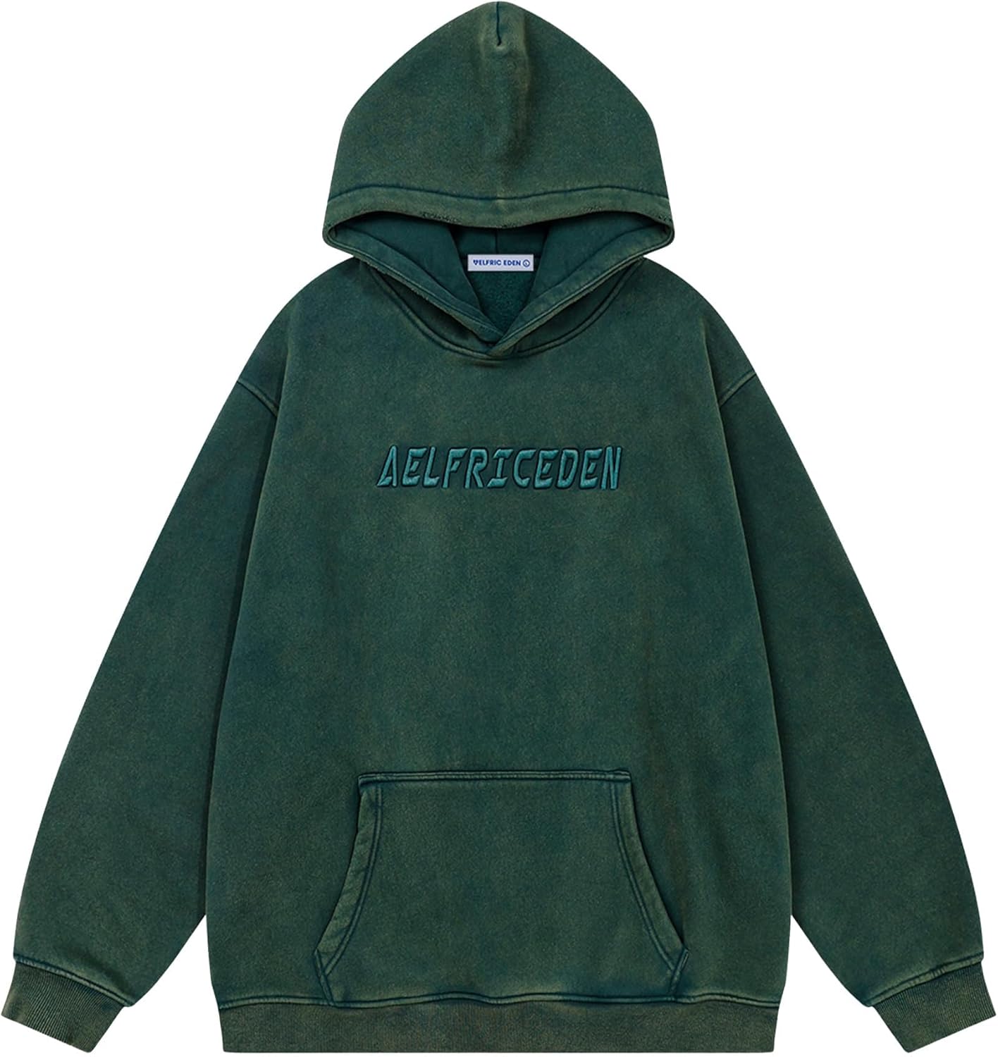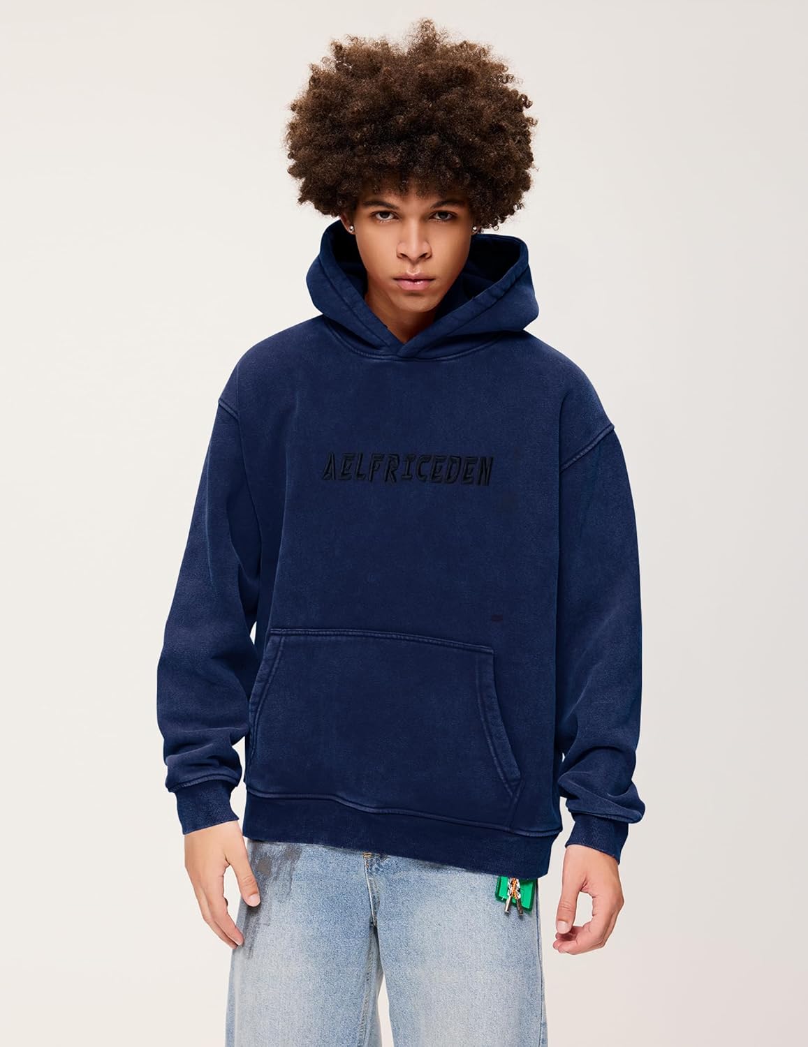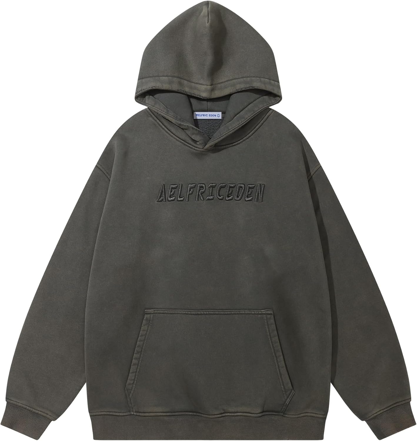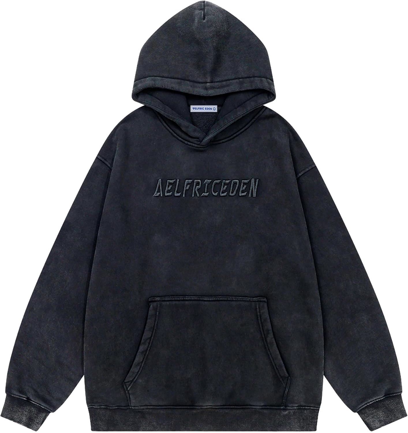 Aelfric Eden Hoodies Mens Acid Wash Hoodie Oversized Vintage Heavyweight Cotton Fleece Hooded Pullover Sweatshirt