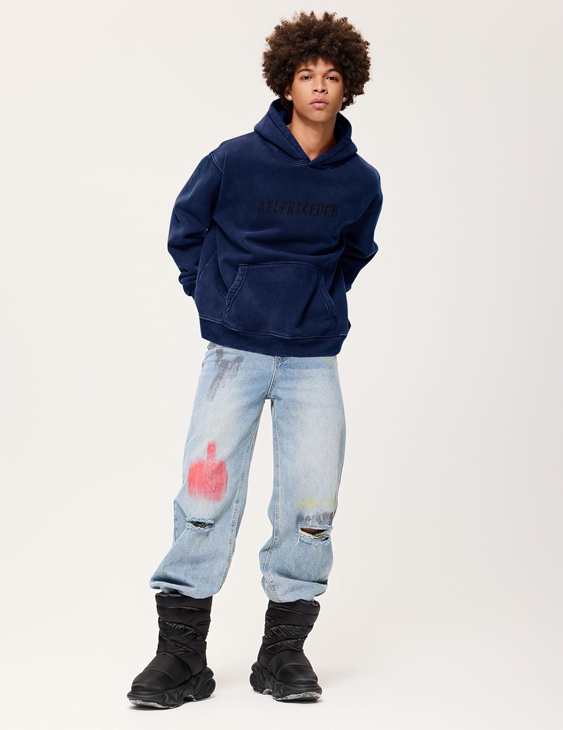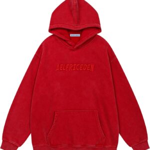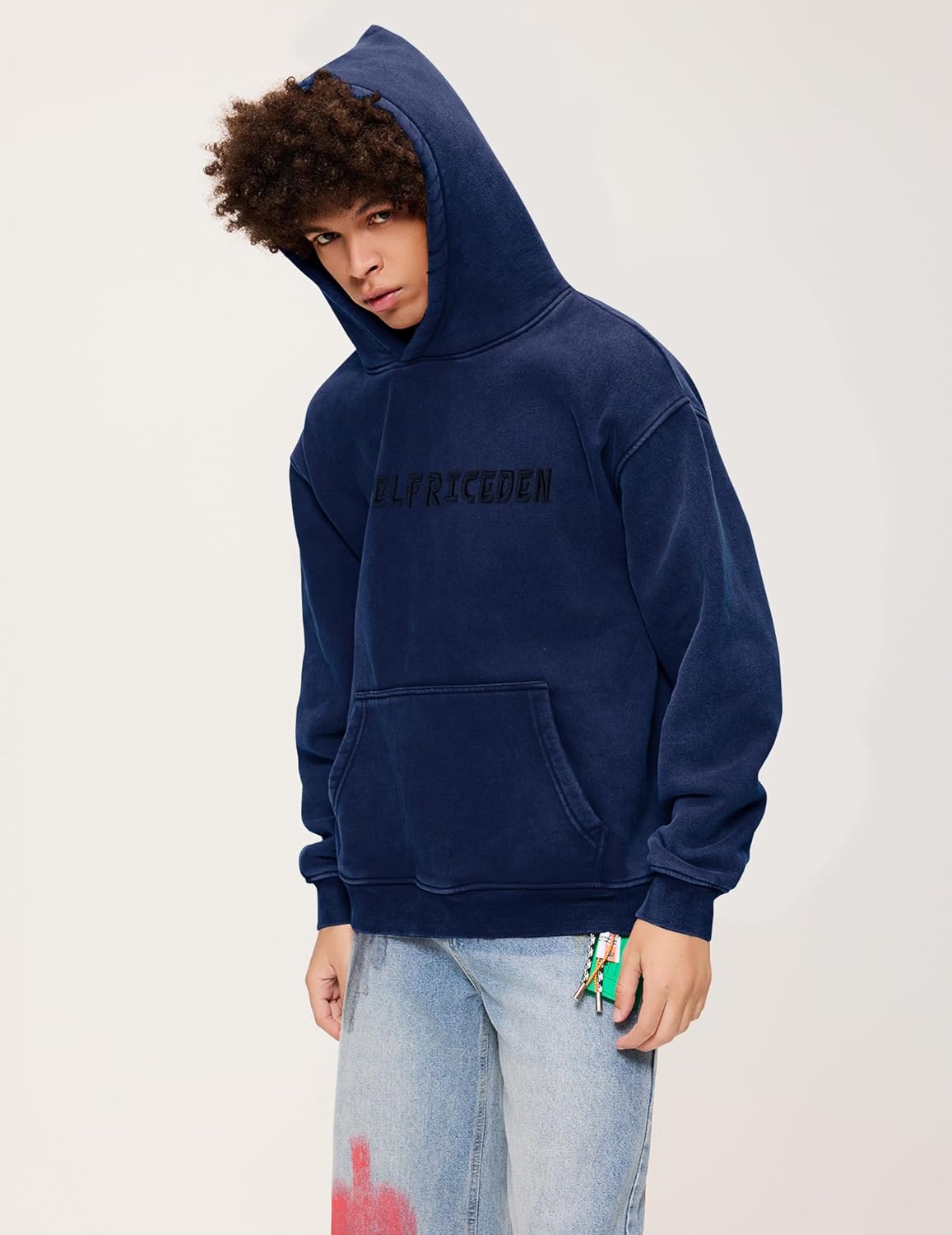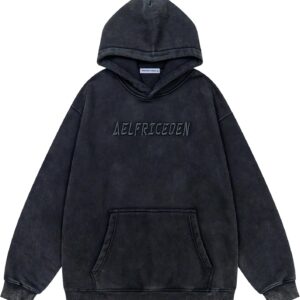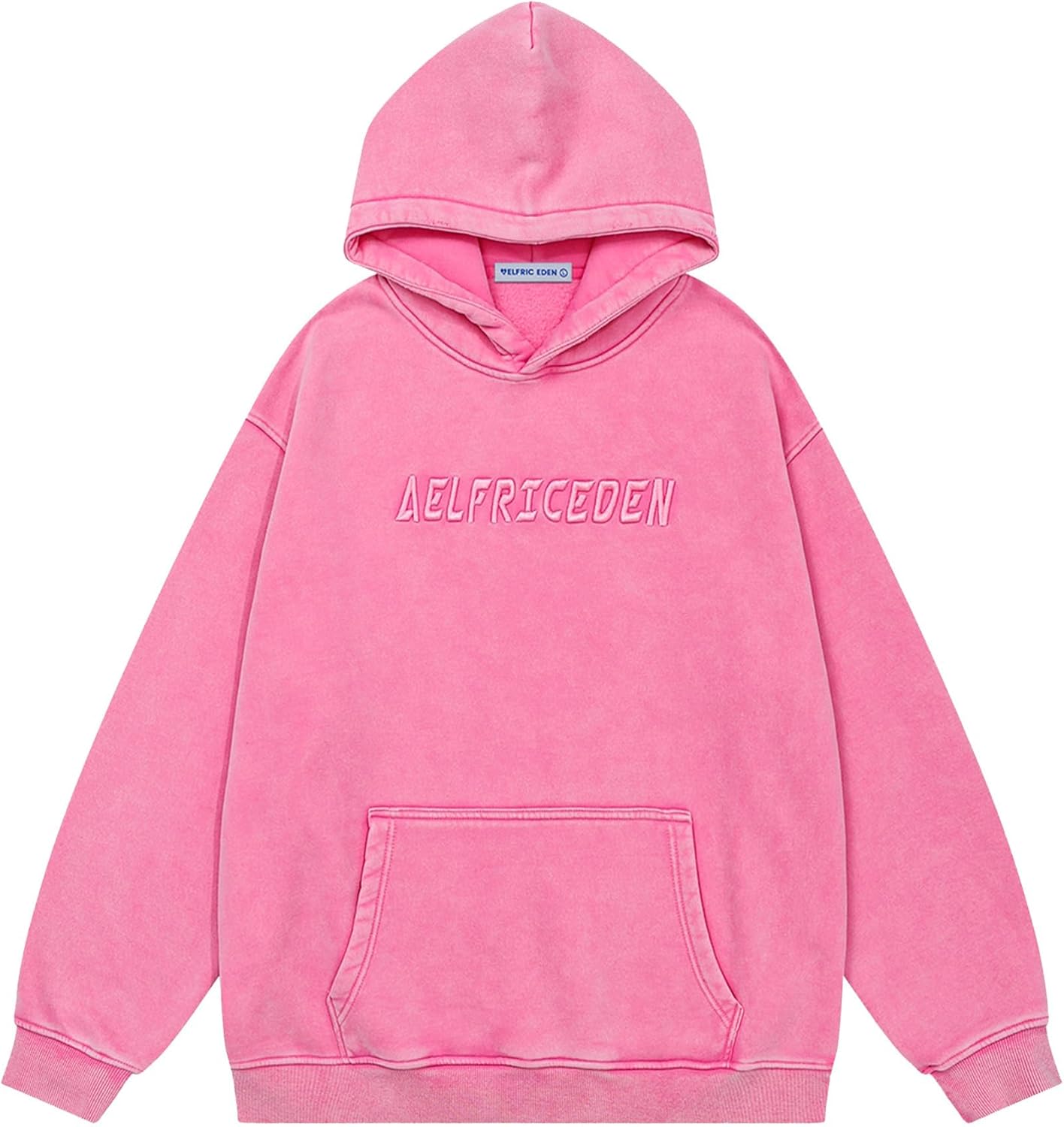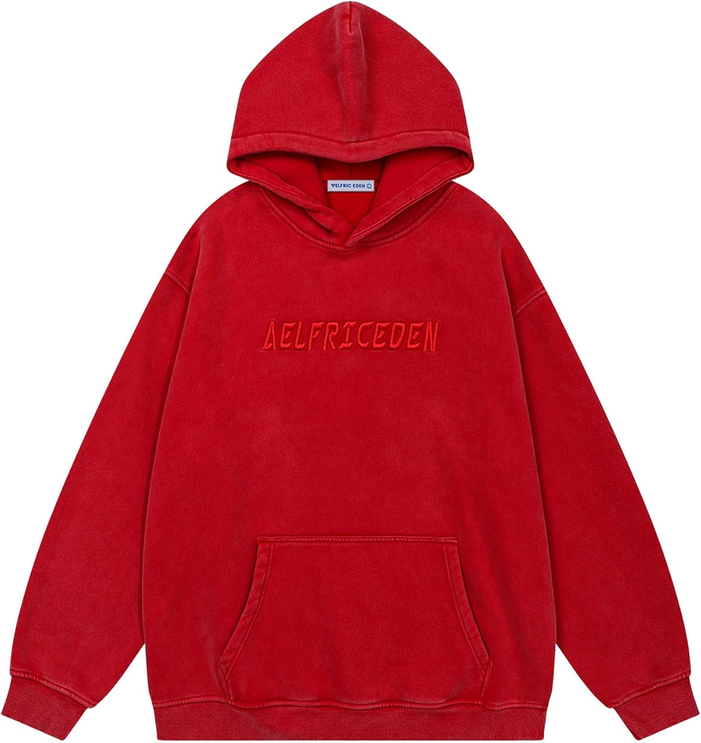 Aelfric Eden Hoodies Mens Acid Wash Hoodie Oversized Vintage Heavyweight Cotton Fleece Hooded Pullover Sweatshirt