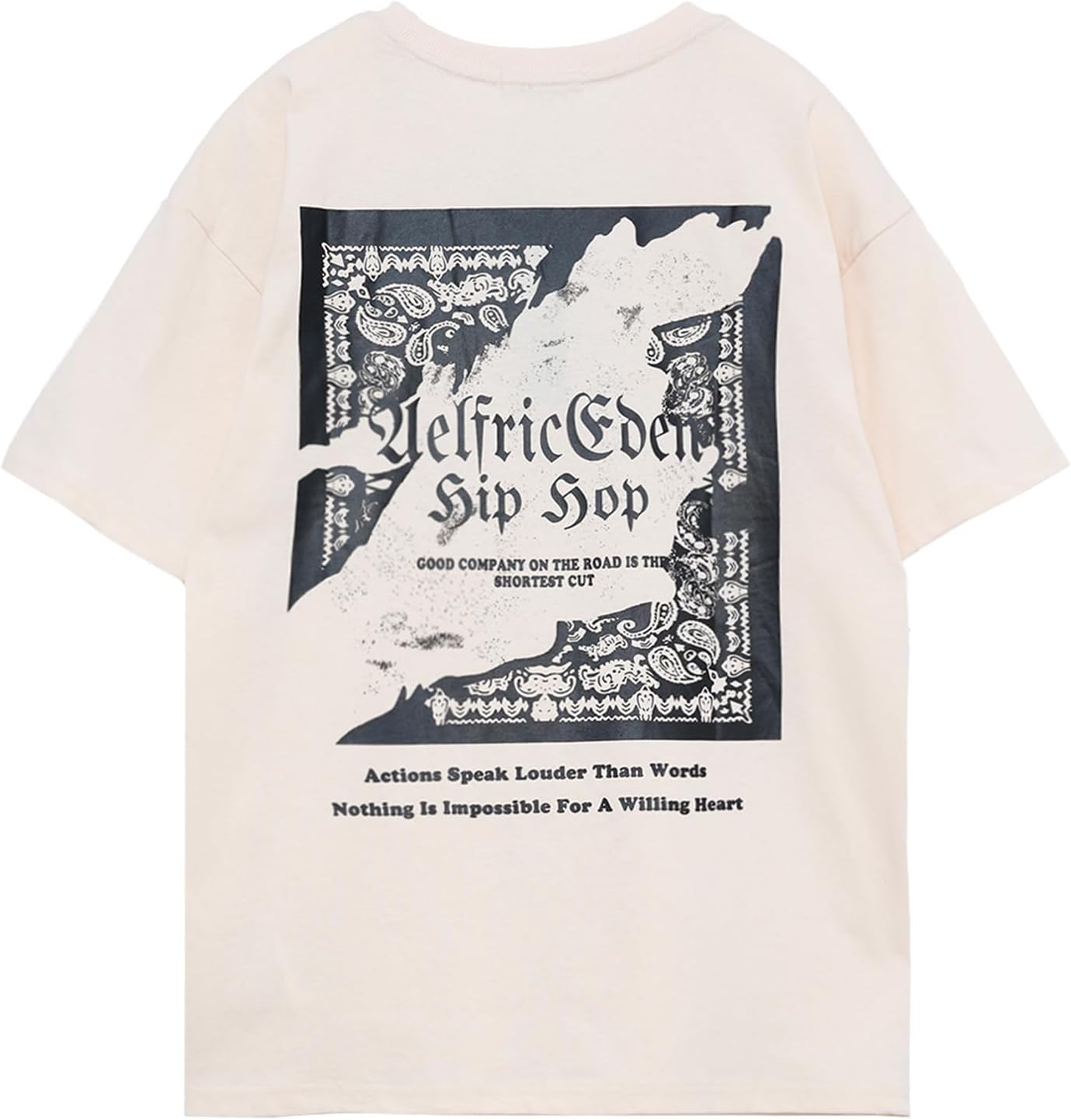 Aelfric Eden Men's Graphic Tees Oversized T Shirts Unisex Vintage Print T-Shirts Casual Trendy Summer Tops