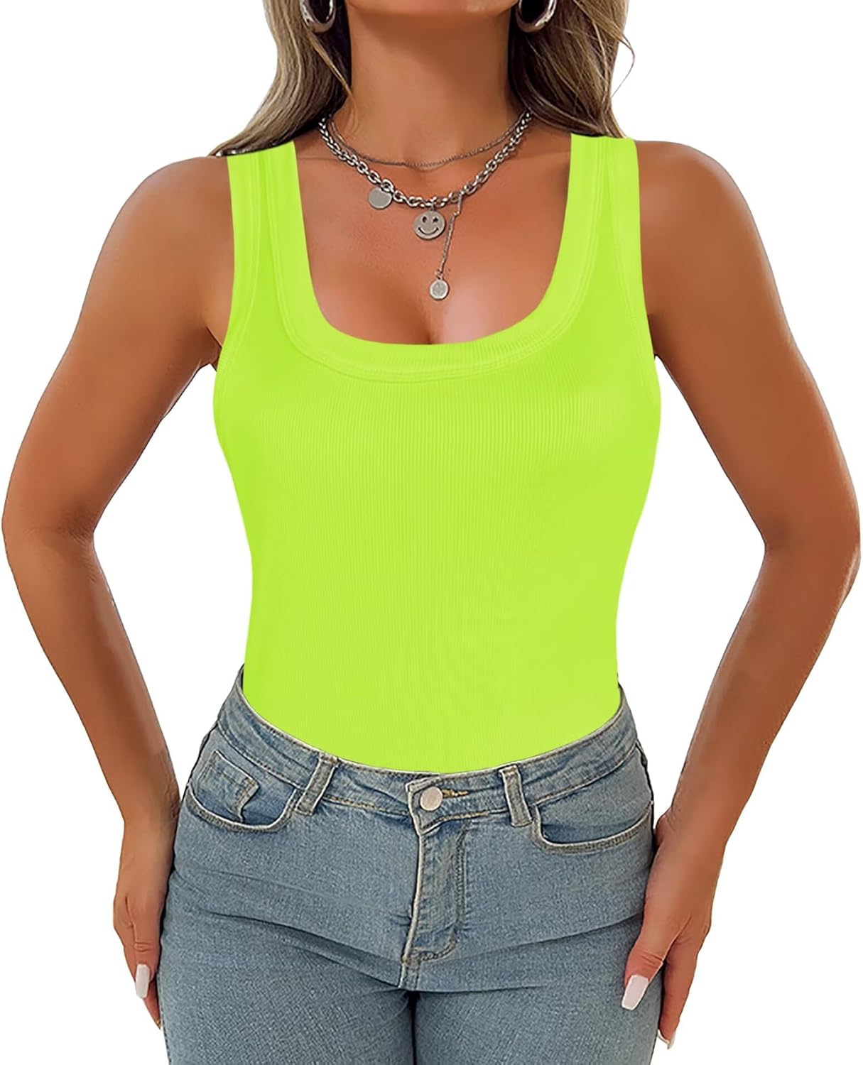 - Scoop neck, low cut, tunic length, solid color for a trendy look. Sexy tank tops for women