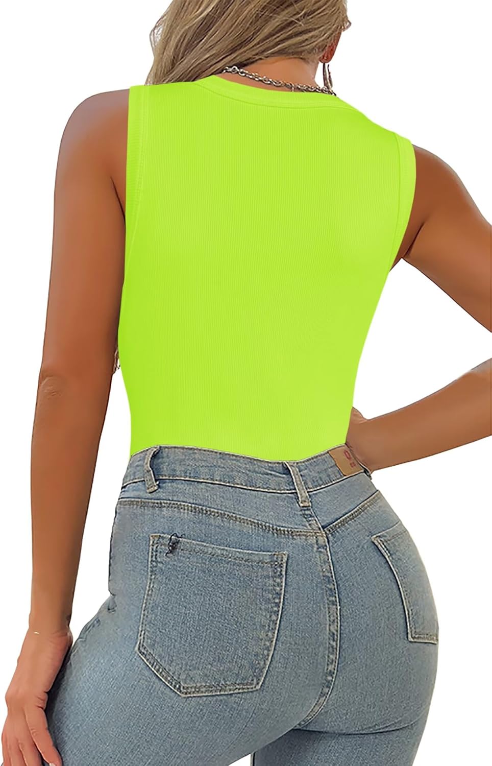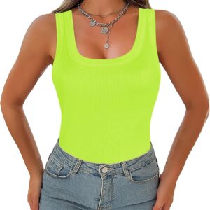 Afibi Womens Scoop Neck Ribbed Tank Tops Low Cut Solid Sexy Summer Sleeveless Fitting Tees Shirts