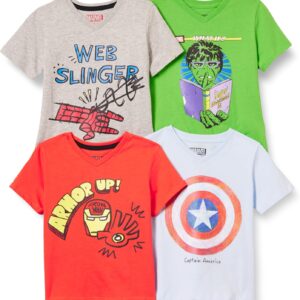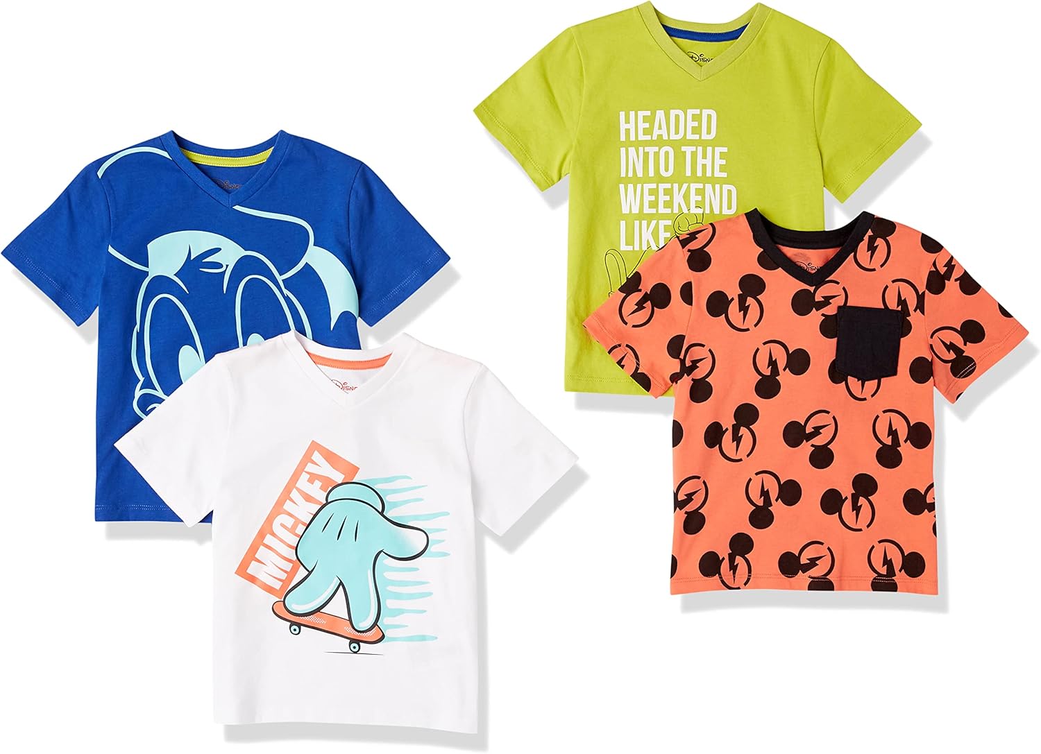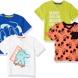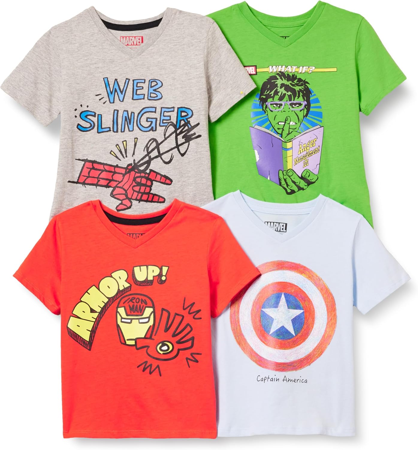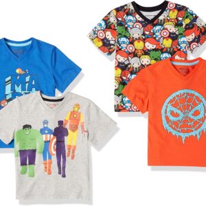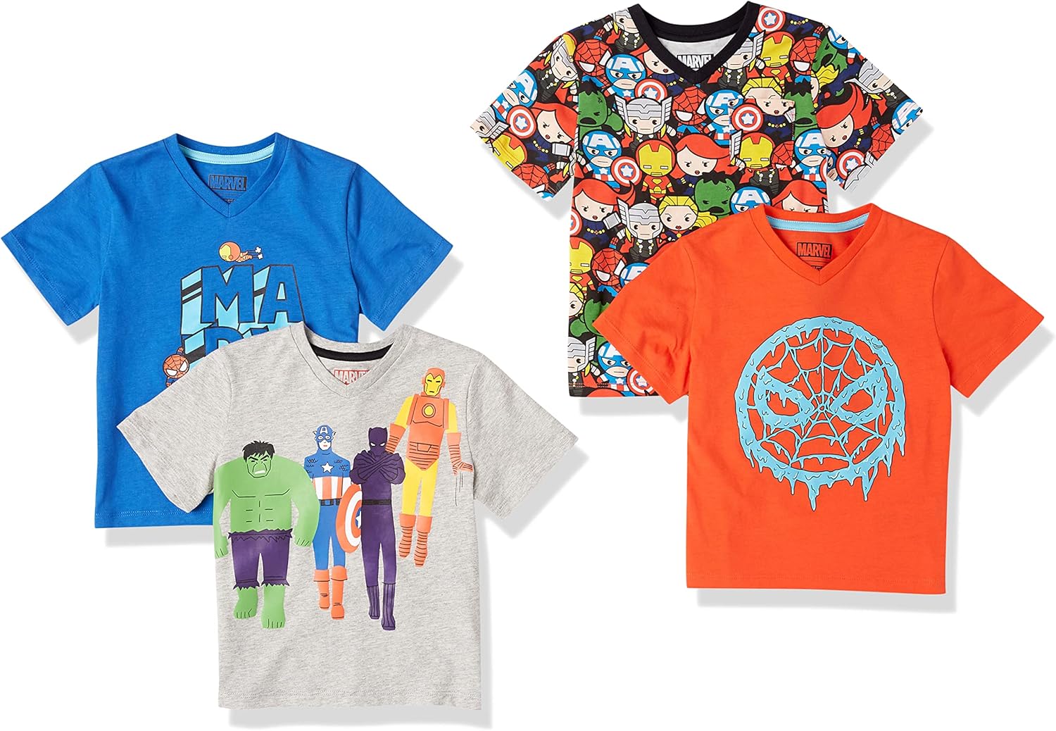 Amazon Essentials Disney | Marvel | Star Wars Boys and Toddlers’ Short-Sleeve V-Neck T-Shirts, Pack of 4