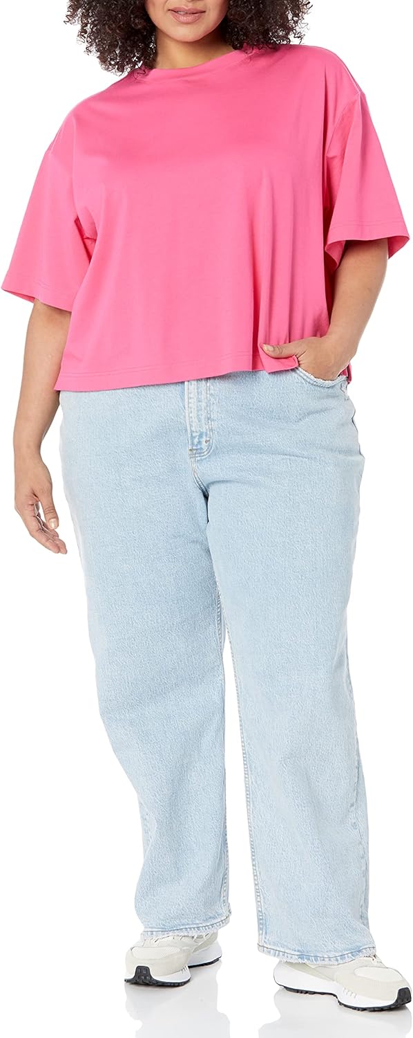 Amazon Essentials Women’s Organic Cotton Drop Shoulder Relaxed Boxy Short-Sleeve T-Shirt (Available in Plus Size)
