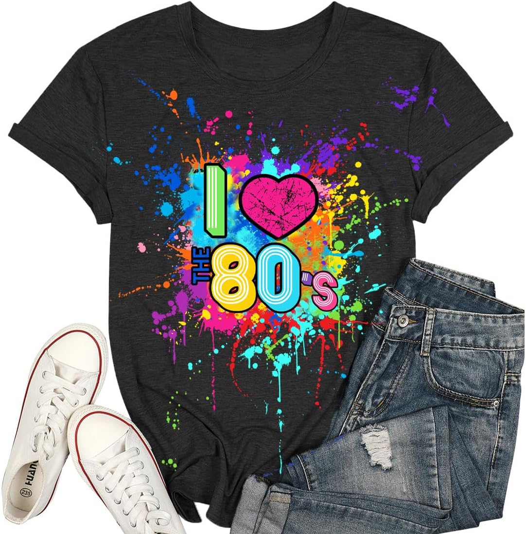 AMWIPE 80s Shirts for Women I Love The 80s Tshirts for Girls 1980 Themed Style Outfit for Party