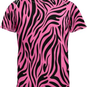 Show your wild style with this sublimated pink & black zebra, polyester blend crew neck t-shirt. This is a printed to order item, all your friends will be envious of your style. The dye sublimation printing process creates slight imperfections that are unique to each garment.