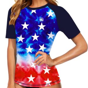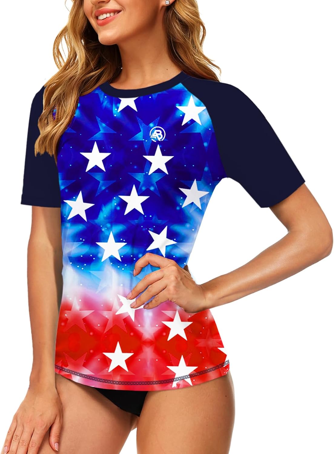 AOBUTE Women Short Sleeve Rash Guard Gradient Sun Protection Swim Shirts