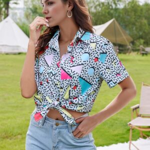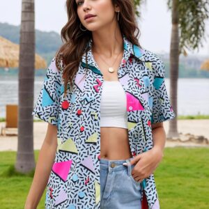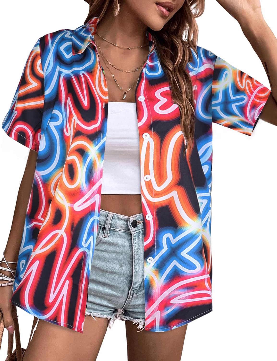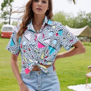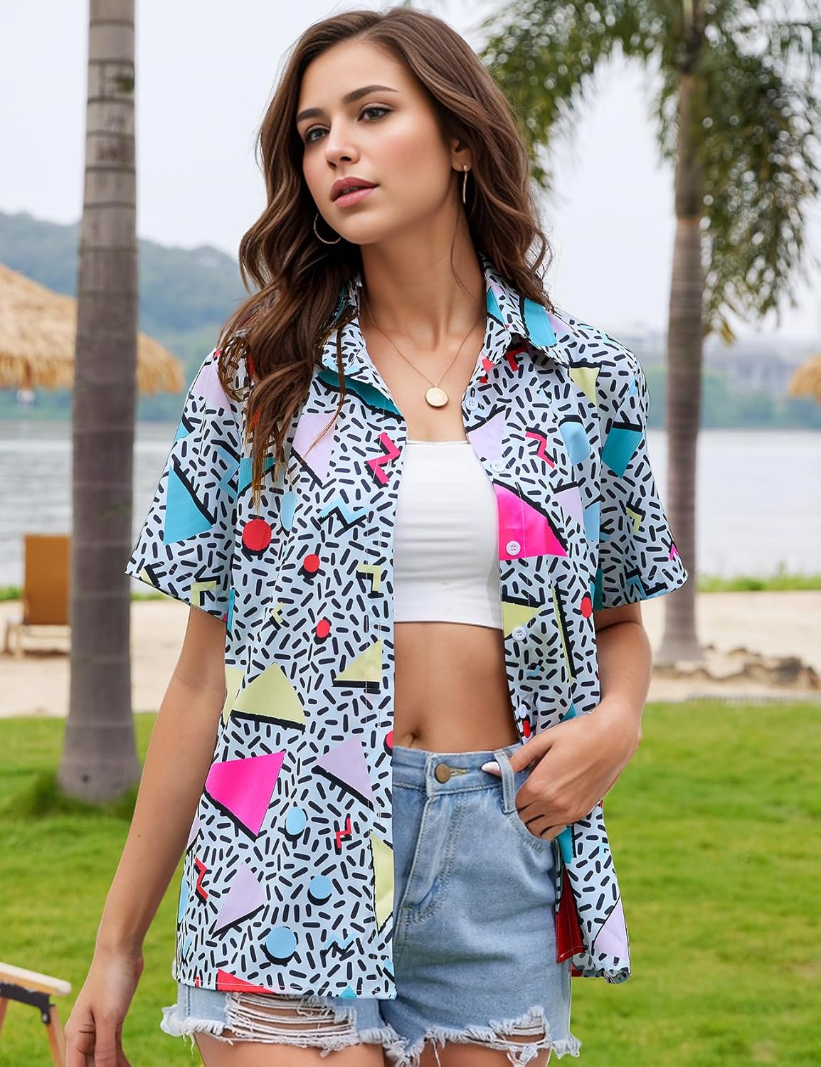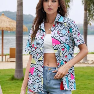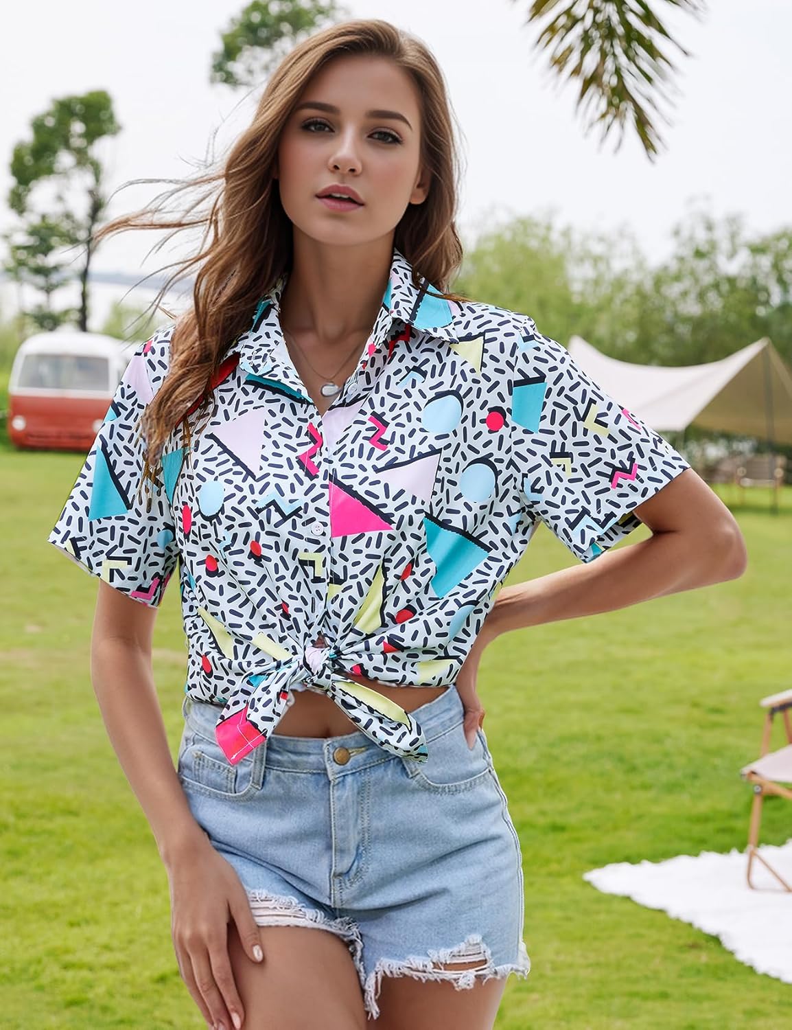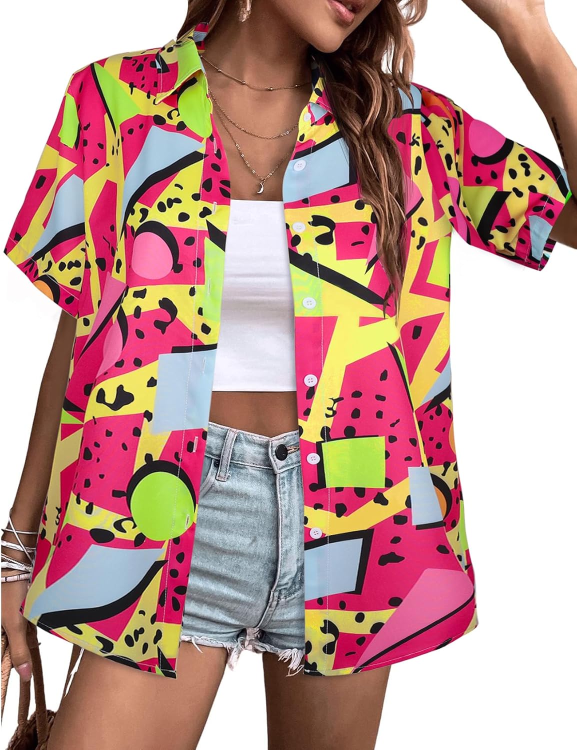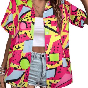 Arssm 80s 90s Shirts for Women Retro Vintage Party Disco Outfits Neon Hawaiian Button Down Blouses Tees Tops