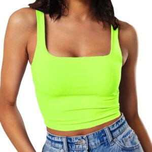 This NEON crop top is suitable to pair with high waist yoga pants, jeans, leggings for cute outfits.