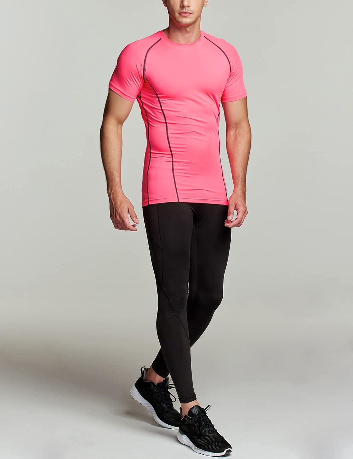 ATHLIO Men’s Cool Dry Short Sleeve Compression Shirts, Sports Baselayer T-Shirts Tops, Athletic Workout Shirt