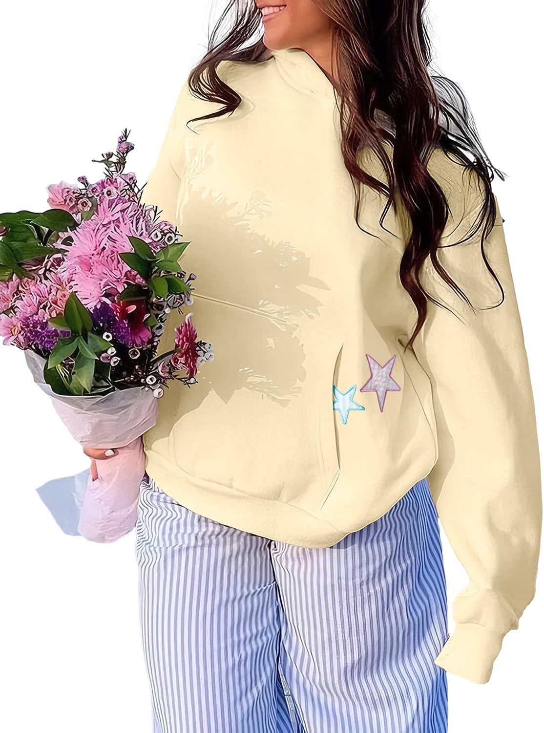 BAIGRAM Women Y2K Stars Graphic Oversized Fleece Hoodies Preppy Aesthetic Drop Shoulder Fall Outfits Girl Sweatshirt Pullover quantity
