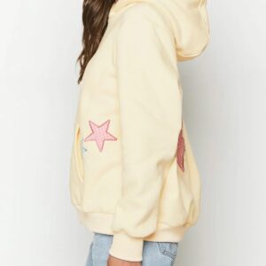 BAIGRAM Women Y2K Stars Graphic Oversized Fleece Hoodies Preppy Aesthetic Drop Shoulder Fall Outfits Girl Sweatshirt Pullover