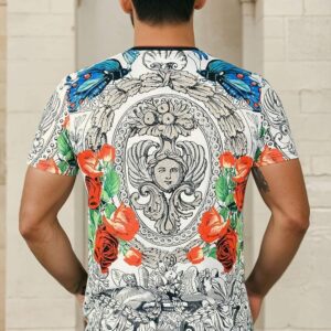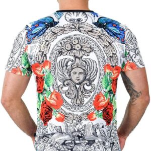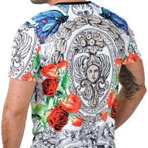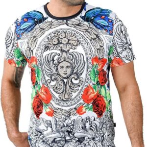 Barabas men’s rhinestone-printed crew neck shirts offer fashion-forward styling that is perfect for any event. Their signature design includes floral, medusa, and butterfly motifs.