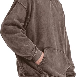 Bobeutou Unisex Acid Wash Hoodie Casual Athletic Oversized Sweatshirts