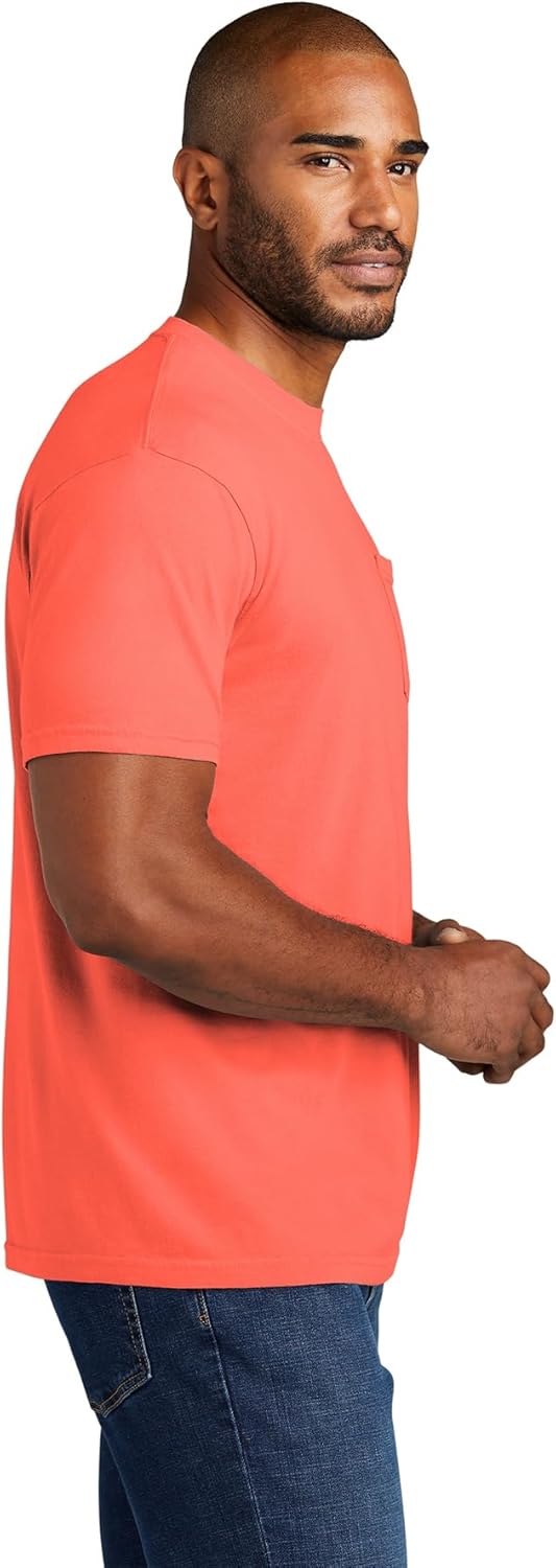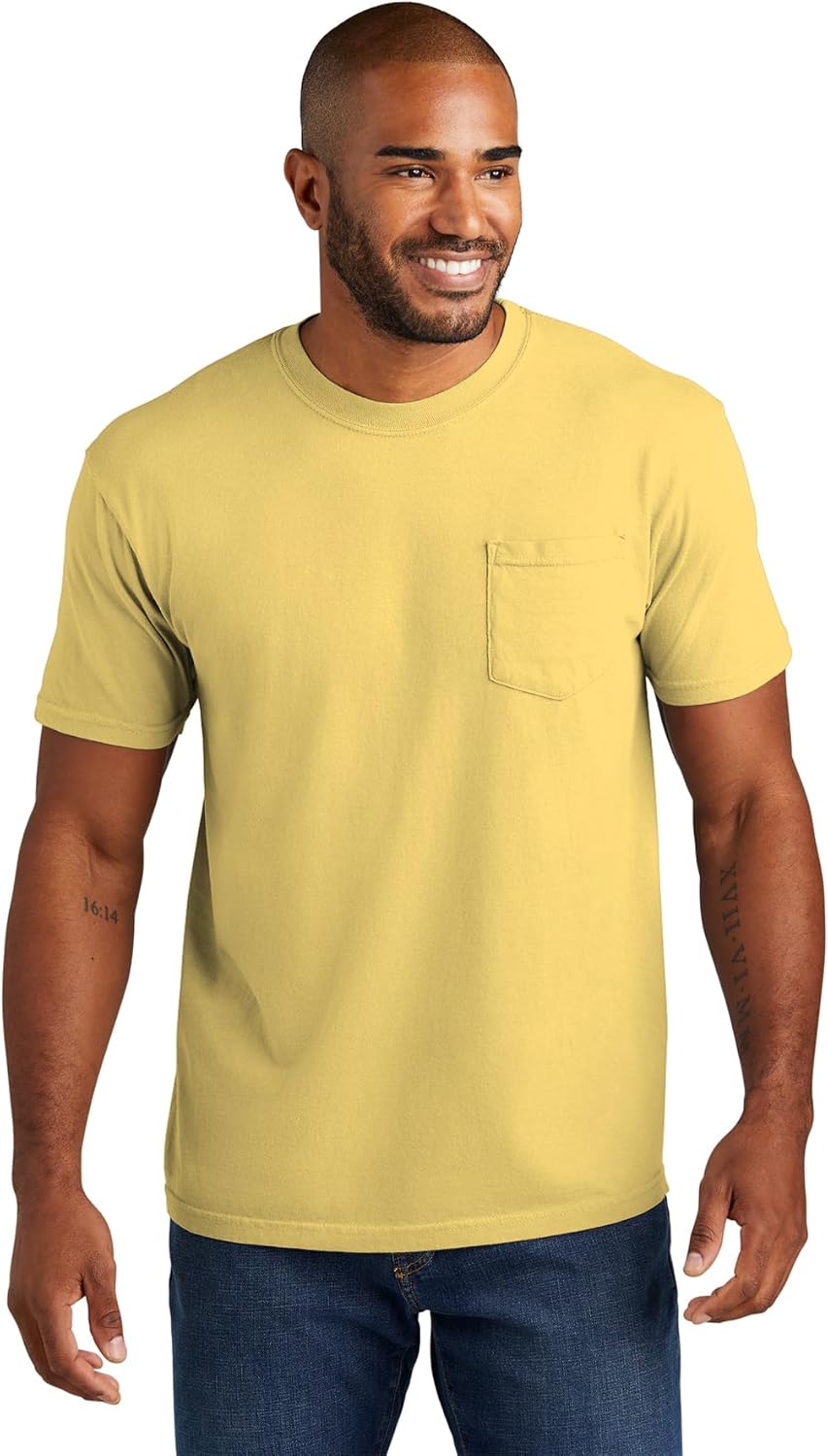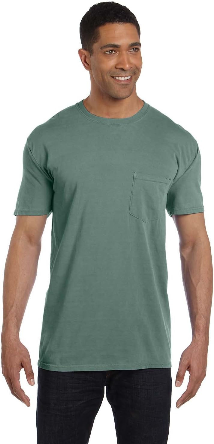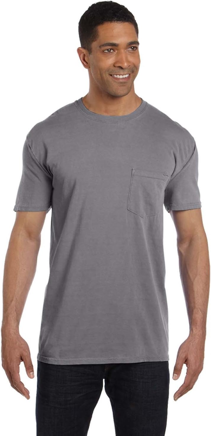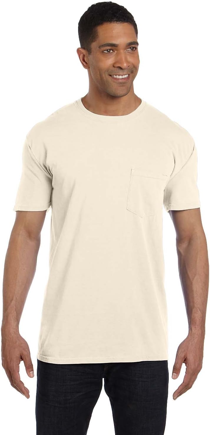 The Comfort Colors 6030 adult heavyweight short sleeve pocket tee gives you ultimate softness, laid-back ease and a vintage vibe that’s been 40 years in the making. It’s crafted with 100% ring spun cotton, garment-dyed for an authentic worn-in look. Take your pick of nature-inspired colors – and experience how a tee shirt is supposed to feel.