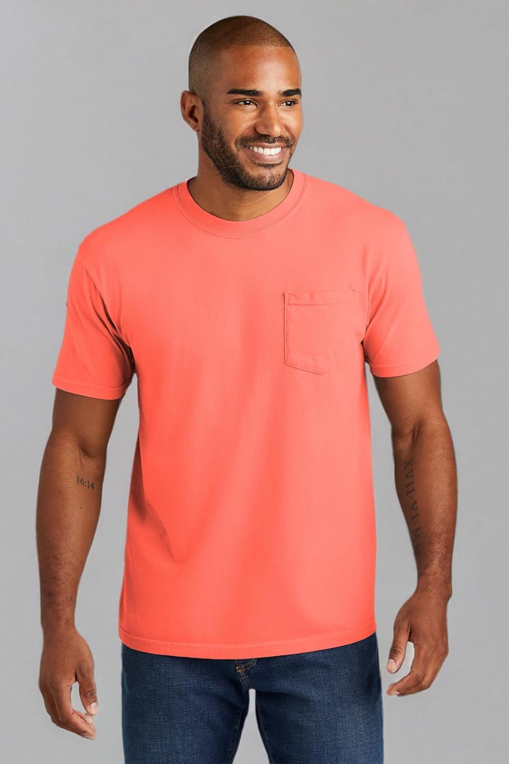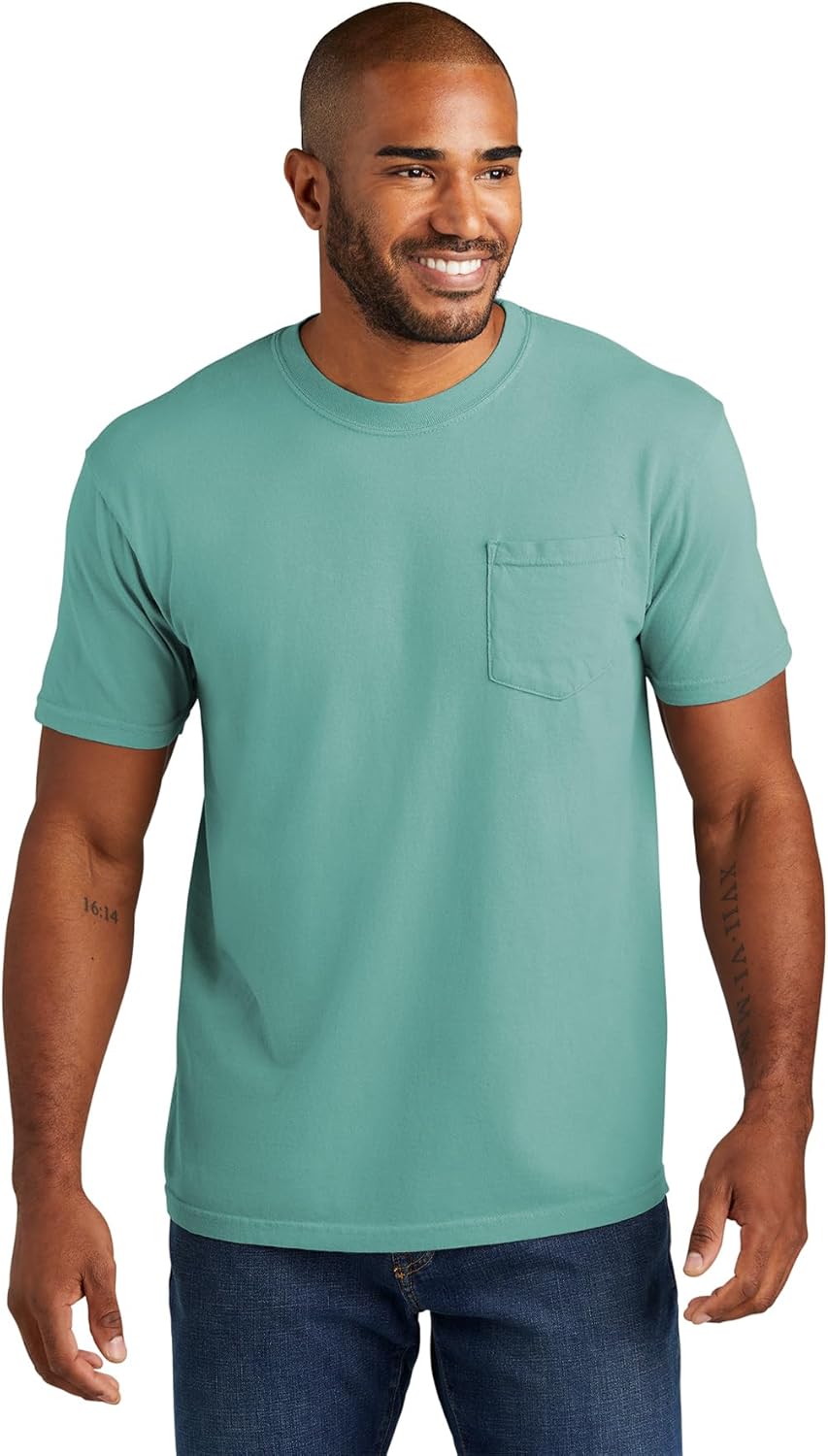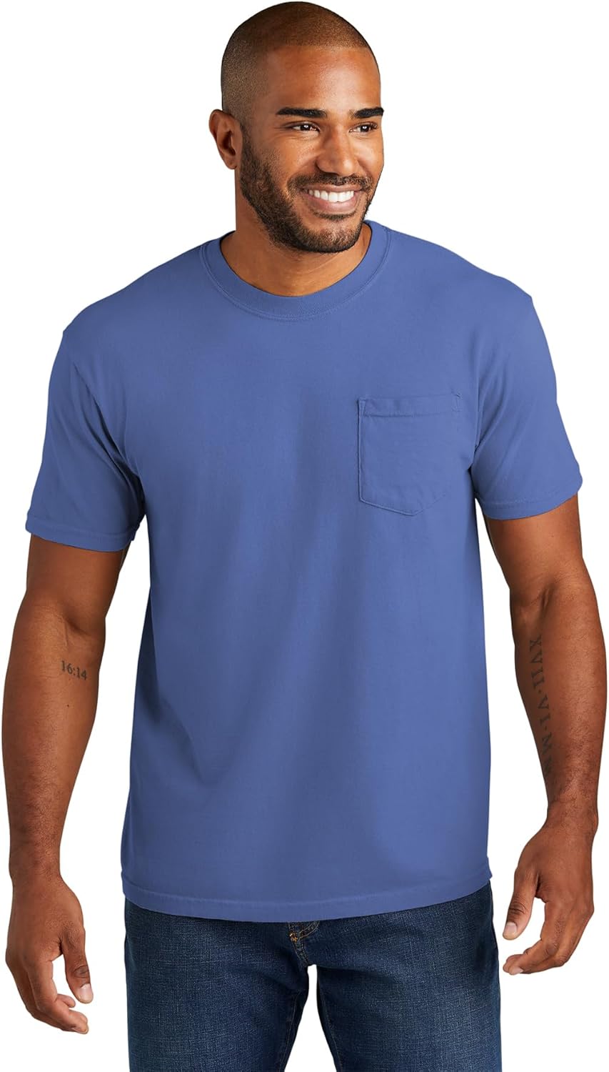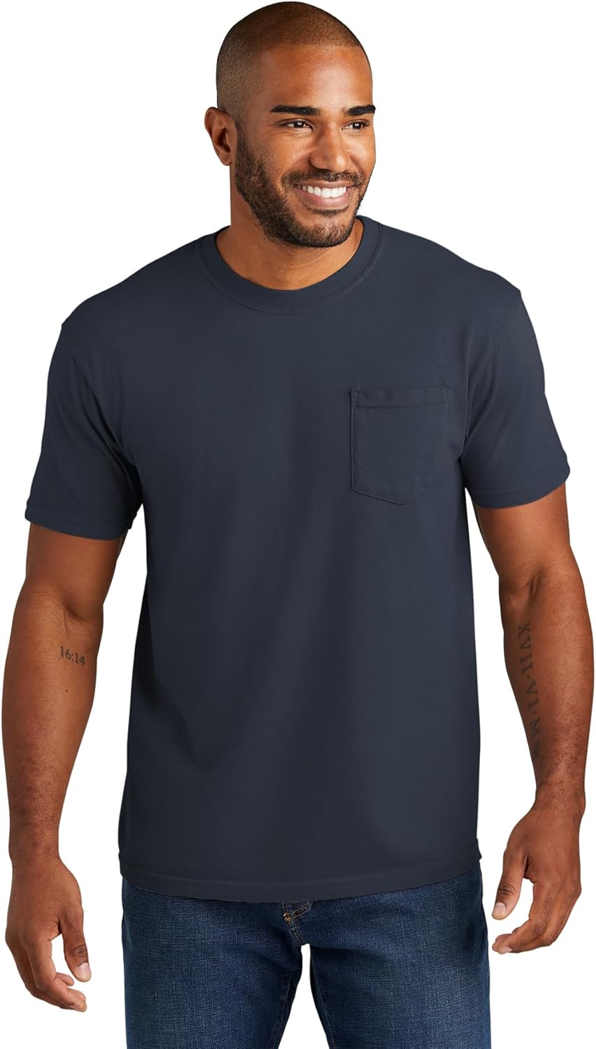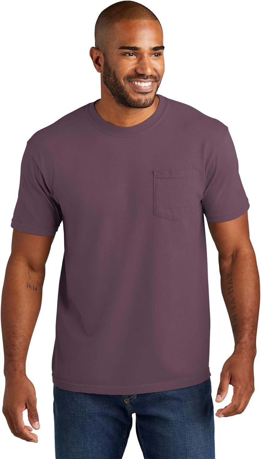 The Comfort Colors 6030 adult heavyweight short sleeve pocket tee gives you ultimate softness, laid-back ease and a vintage vibe that’s been 40 years in the making. It’s crafted with 100% ring spun cotton, garment-dyed for an authentic worn-in look. Take your pick of nature-inspired colors – and experience how a tee shirt is supposed to feel.
