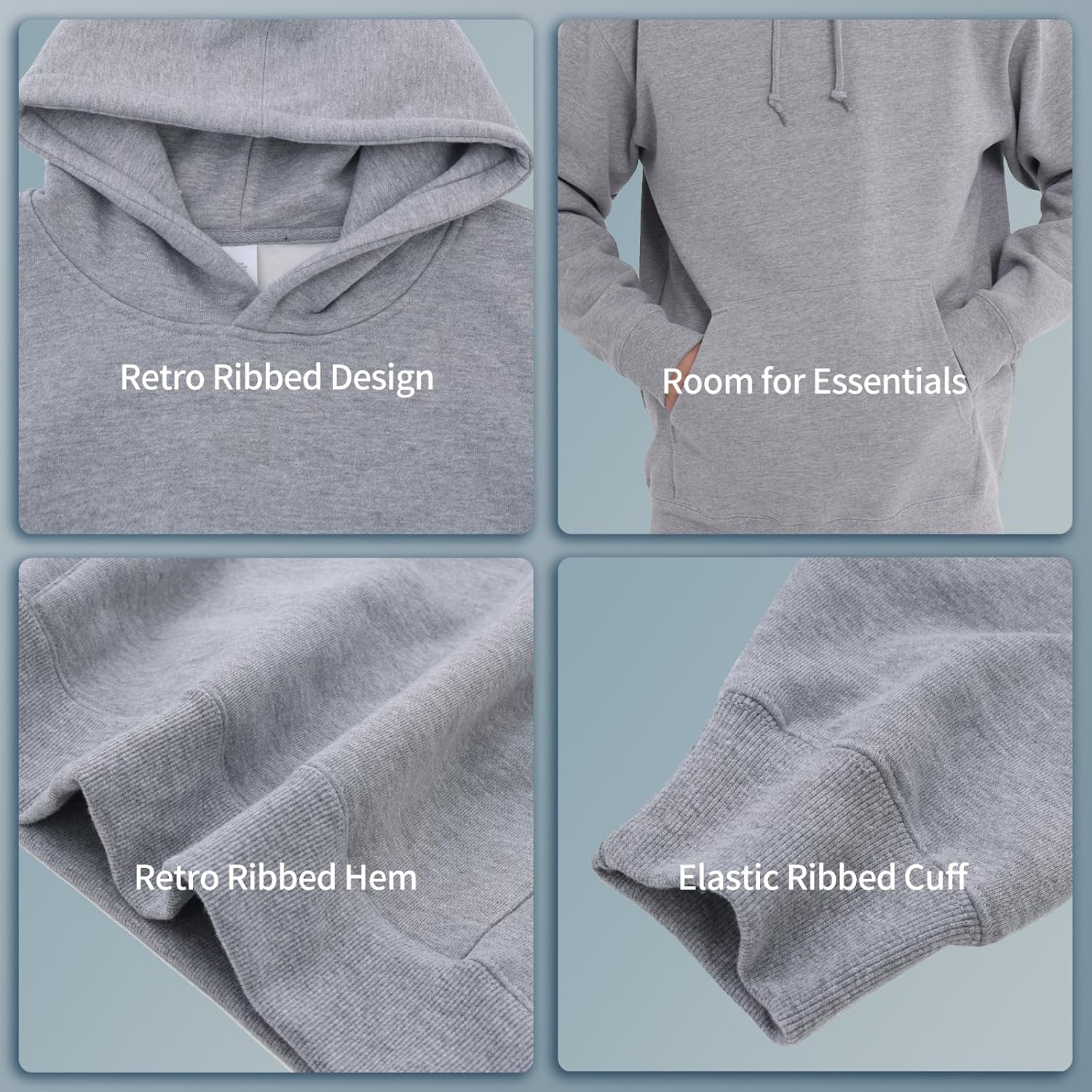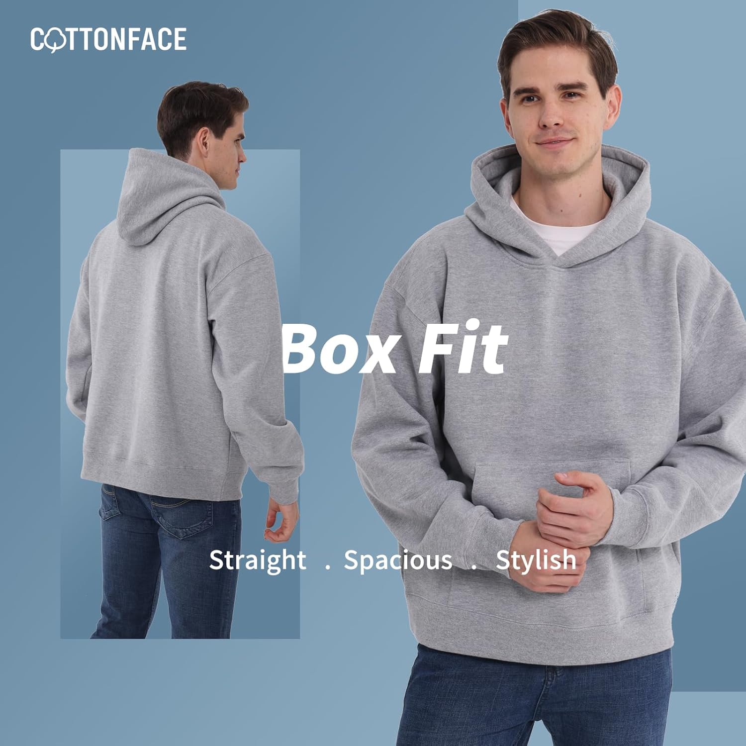 COTTONFACE Men’s Pullover Hoodie \u2013 Heavyweight 13oz Box Fit Sweatshirt, Retro Streetwear Style