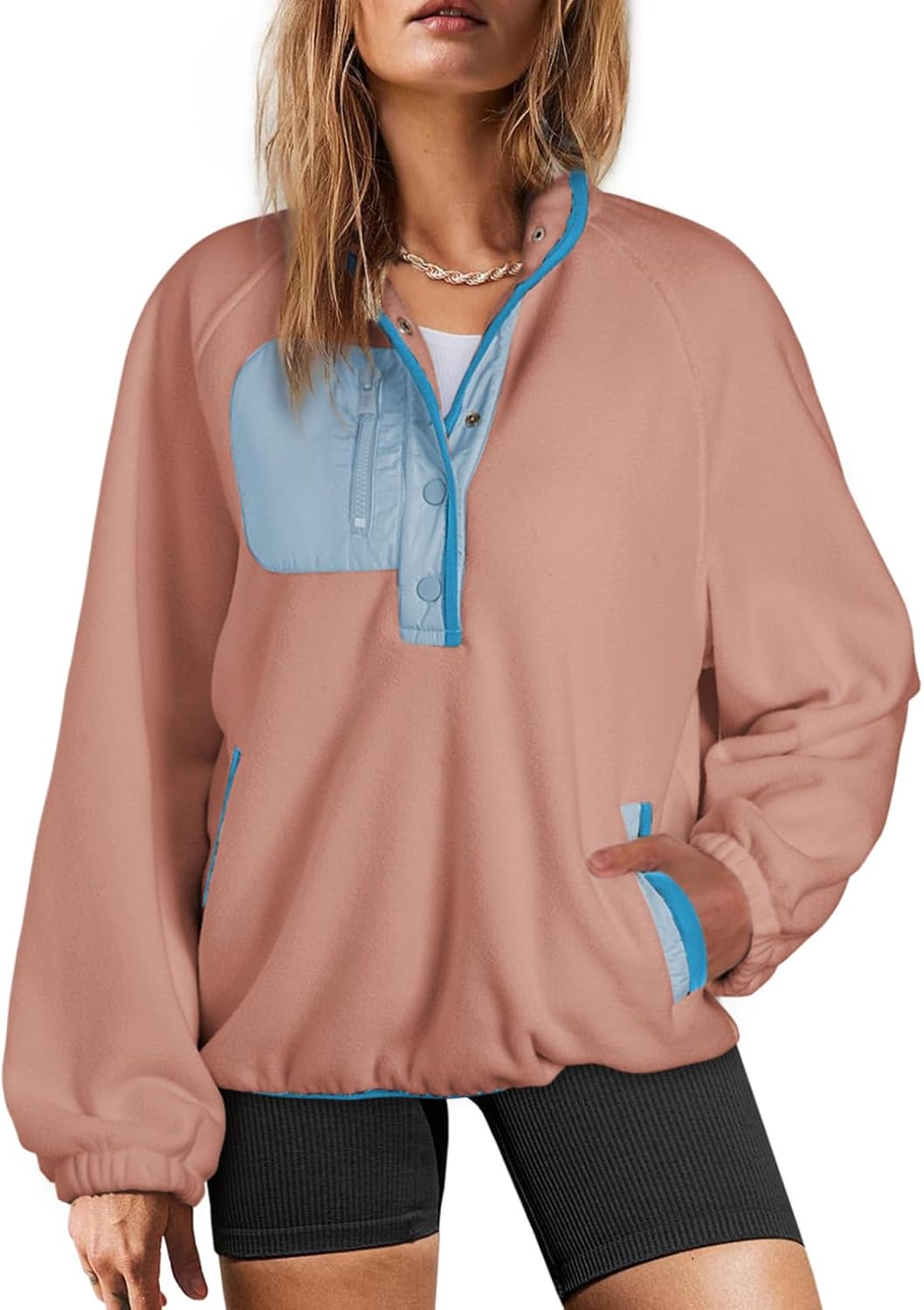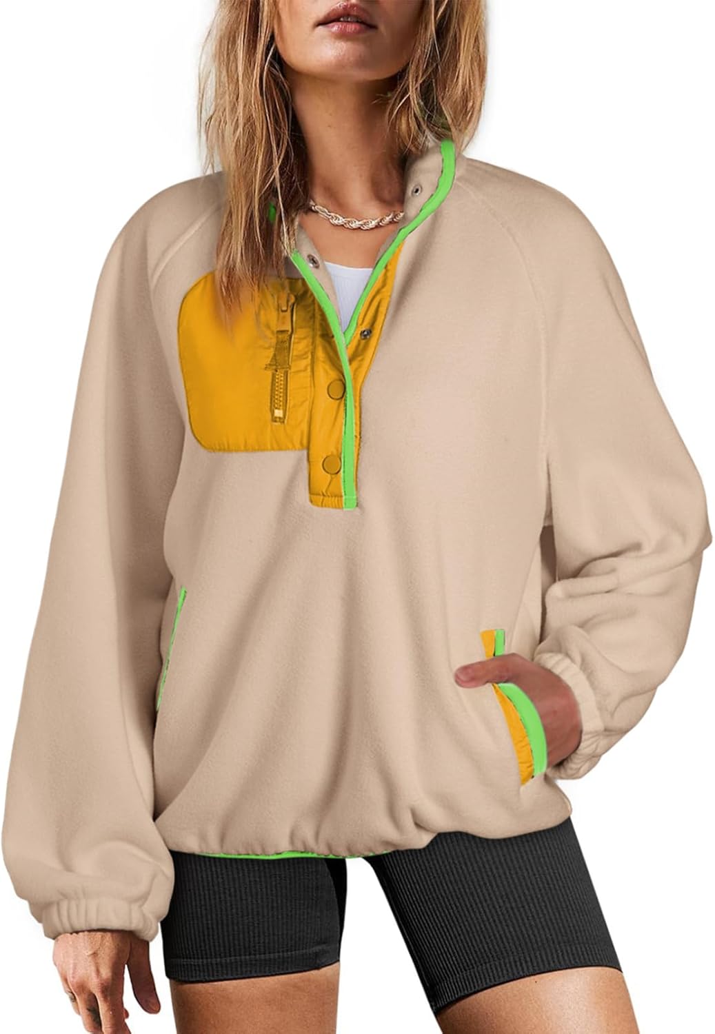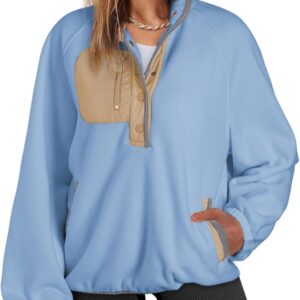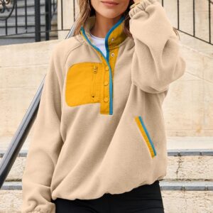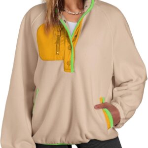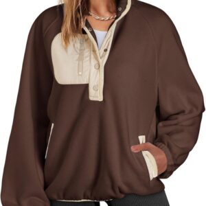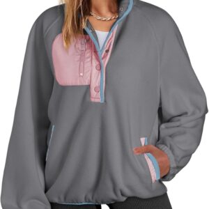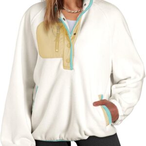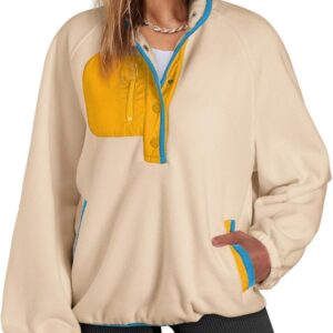 Dokotoo Sweatshirt for Women Oversized Fuzzy Fleece Jacket Color Block Button Long Sleeve Pullover Sherpa Sweatshirts Tops