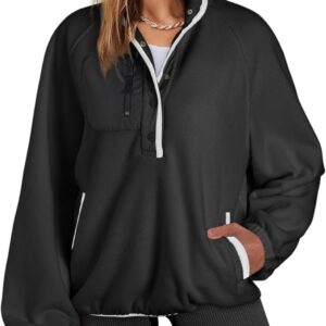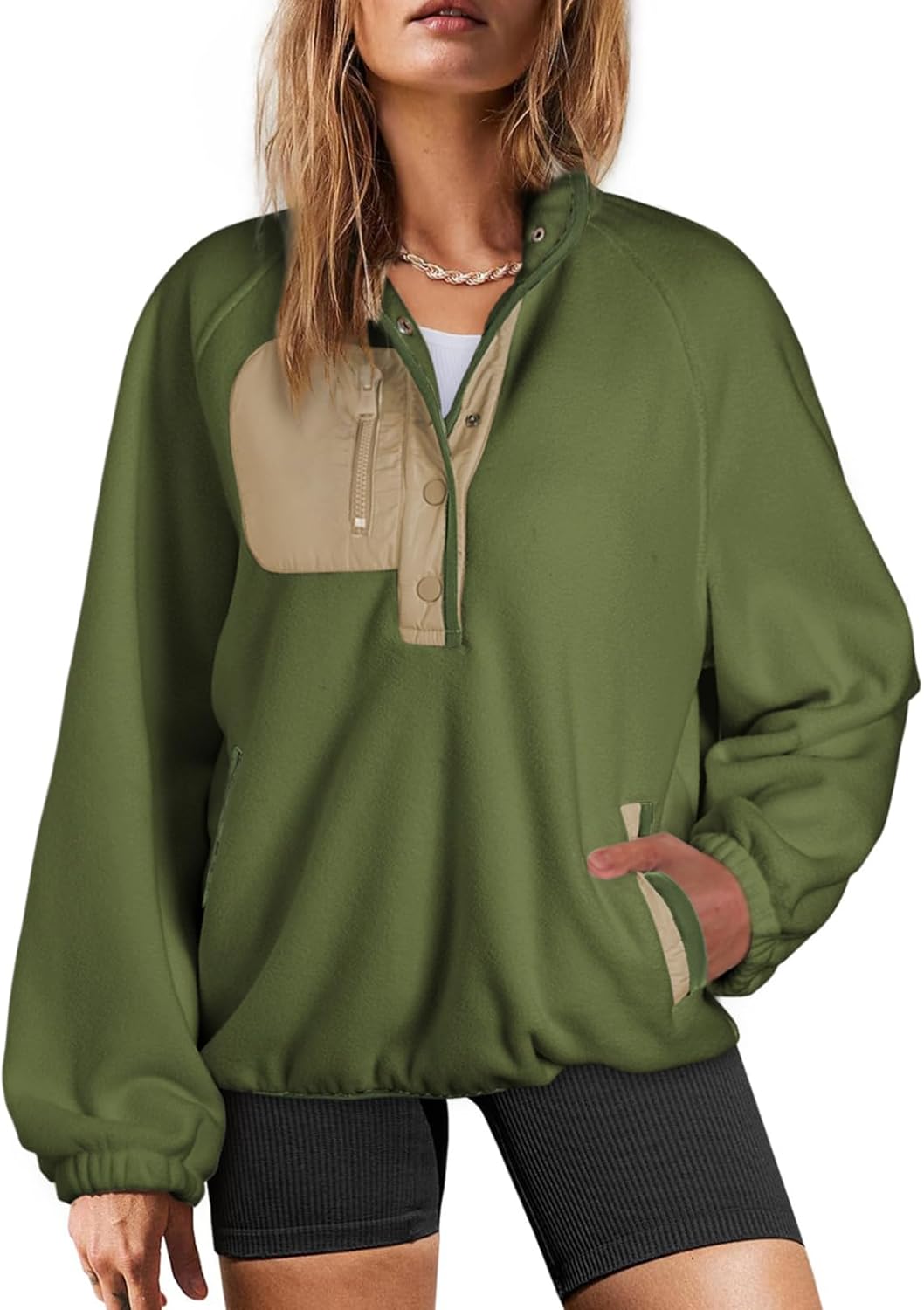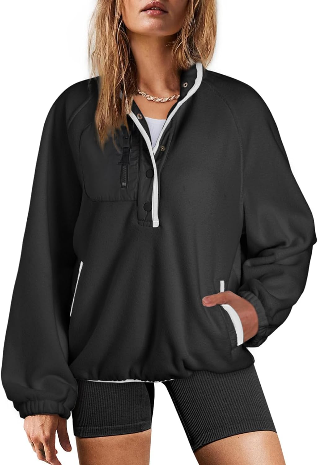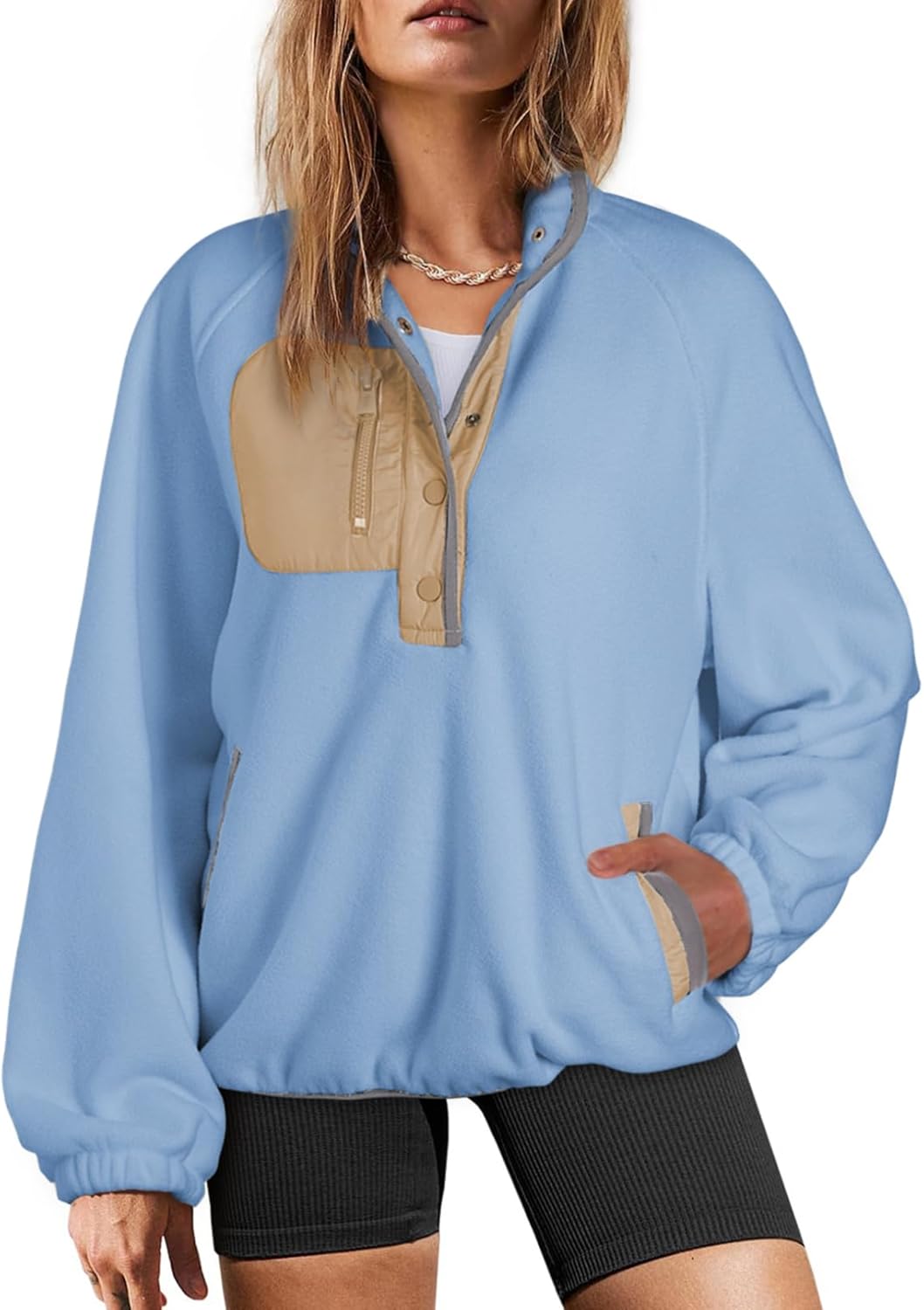 Dokotoo Sweatshirt for Women Oversized Fuzzy Fleece Jacket Color Block Button Long Sleeve Pullover Sherpa Sweatshirts Tops