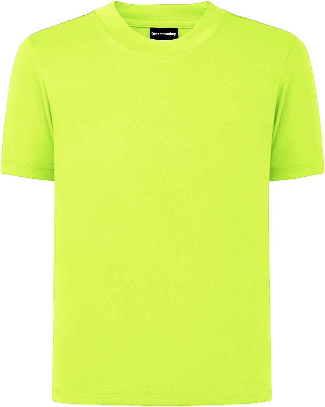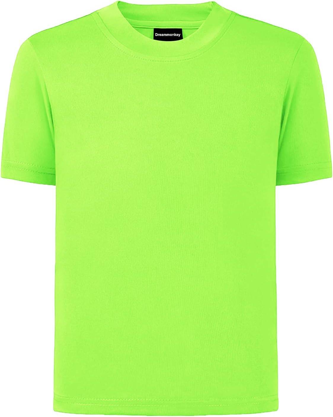 Dreammonkey 4T to Youth Neon Shirt Kids Rash Guard UPF 50+ Dry Fit Athletic Short Sleeve T Shirts for Boys and Girls