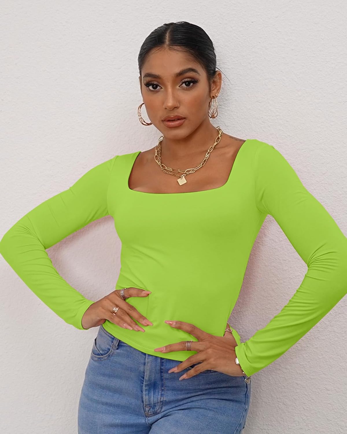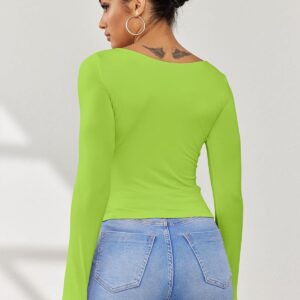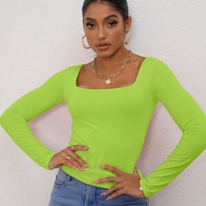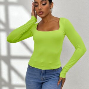 This basic crop t shirt for women sexy casual, double layer, long sleeve, square neck, Basic womens workout tops. Cute and trendy. 92% Rayon + 8% Spandex, stretchy and breathable double layer fabric, lightweight, super soft and comfortable. Healthy and body friendly, suitable for a long day wear, Fits wear in different occasion.