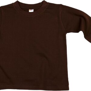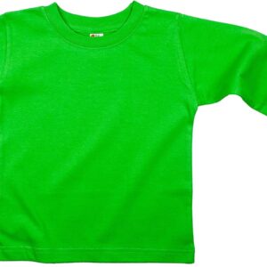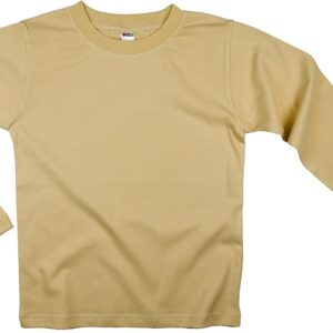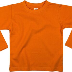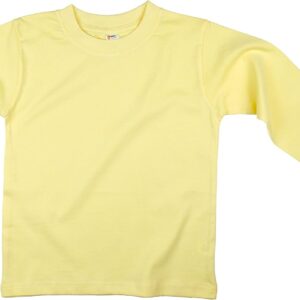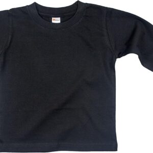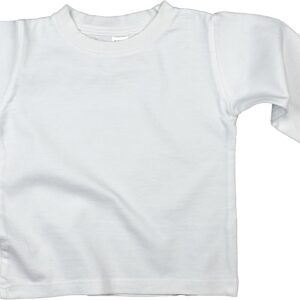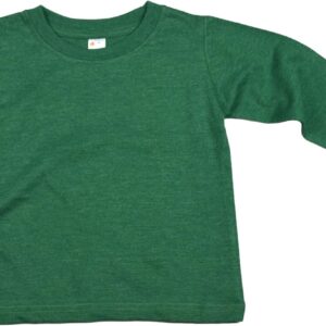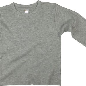 Infant’s crew neck t-shirt – long sleeve, knitted, 20 single, 100% ring spun combed cotton, Heather (93% cotton & 7% viscose). Ribbed neck, shoulder-to-shoulder tape, double needle hem sleeves & bottom, coverseam neck, side stitched. White is stitched with cotton thread.