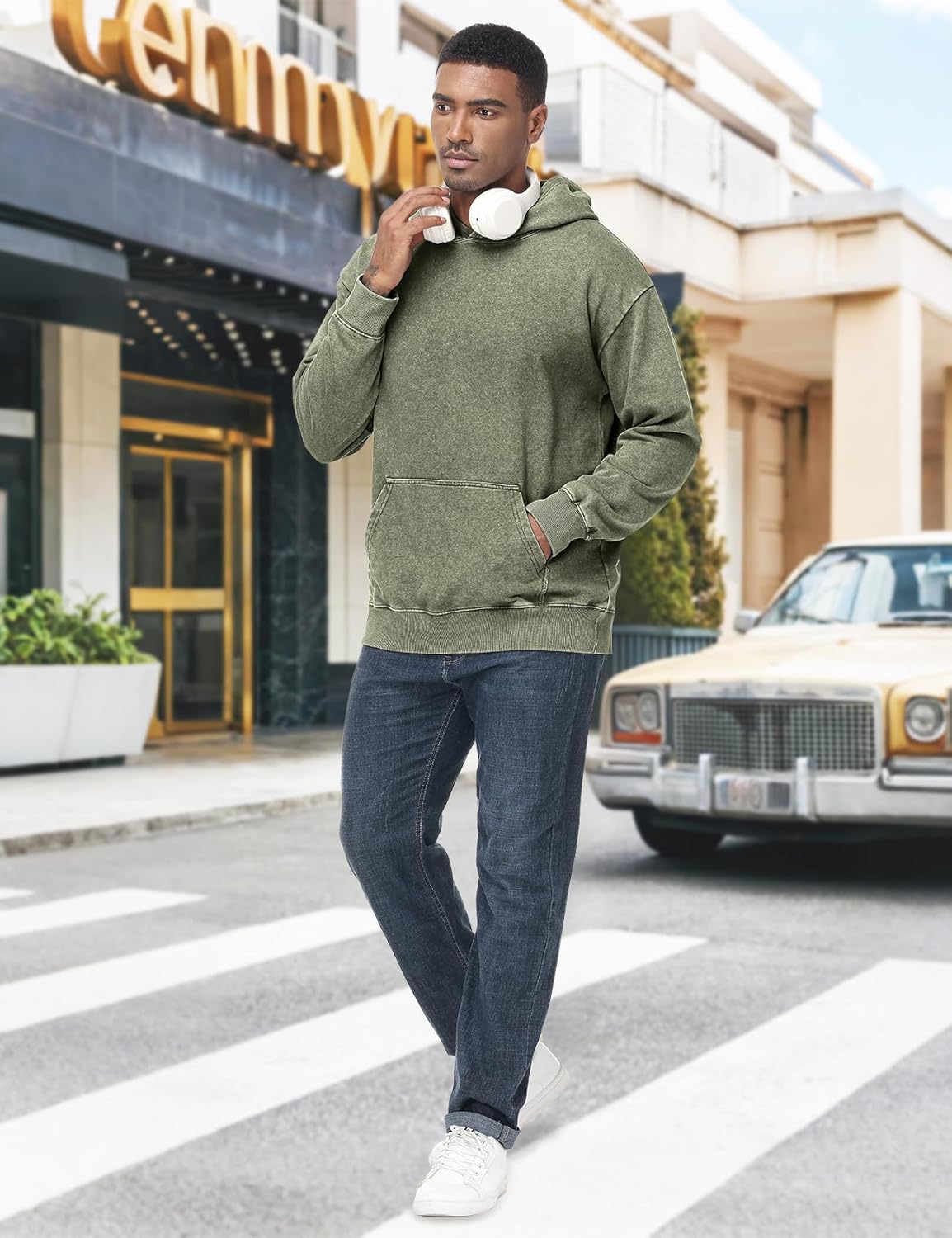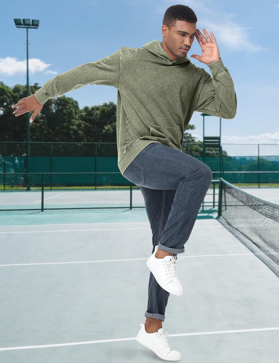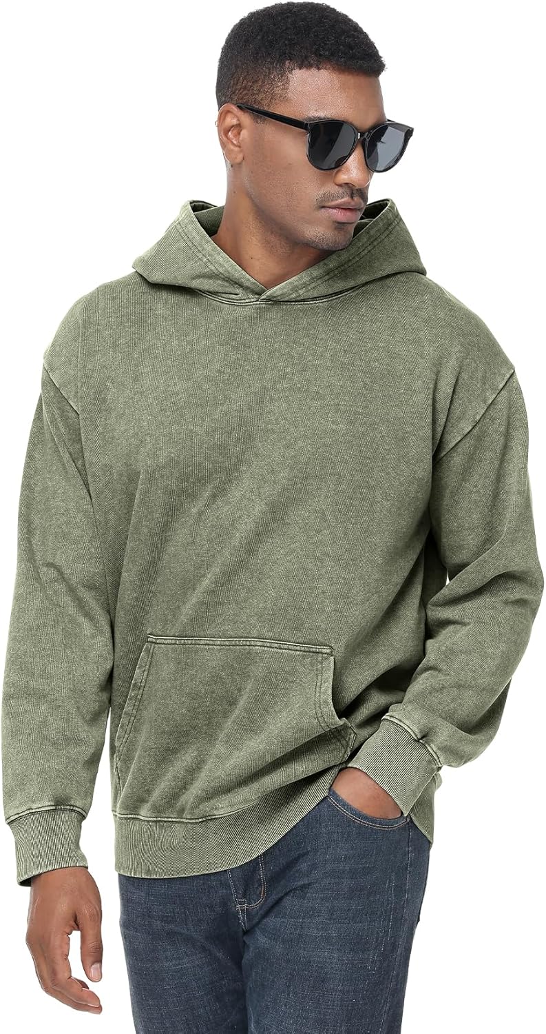 Eisctnd Mens Hoodies Oversized Unisex Acid Wash Casual Vintage Cotton Sweatshirt, Baggy Basic Streetwear Pullover