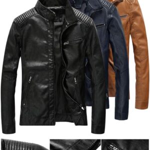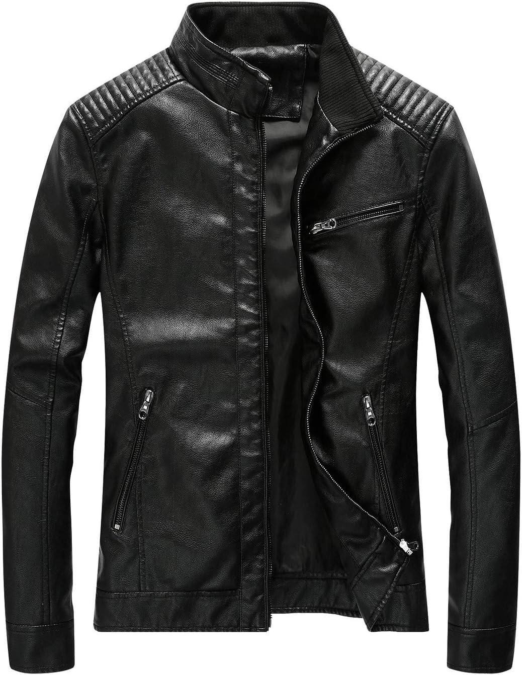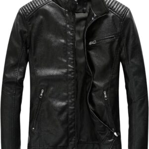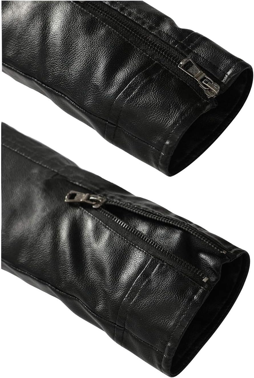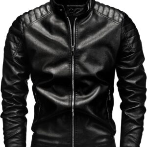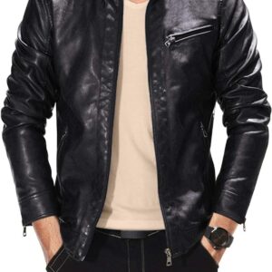 Fairylinks Leather Jacket Men Black Slim Fit Motorcyle Lightweight