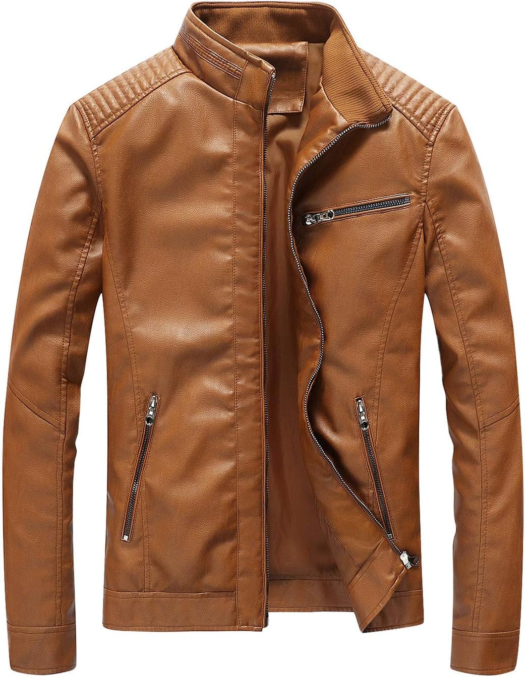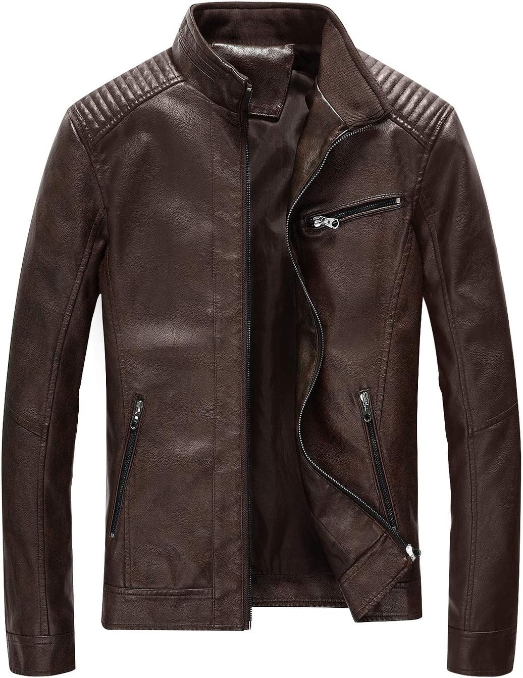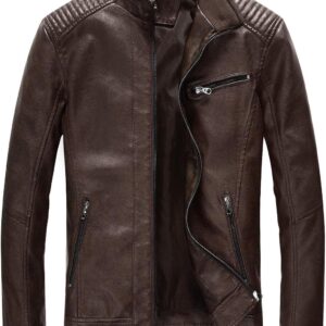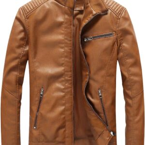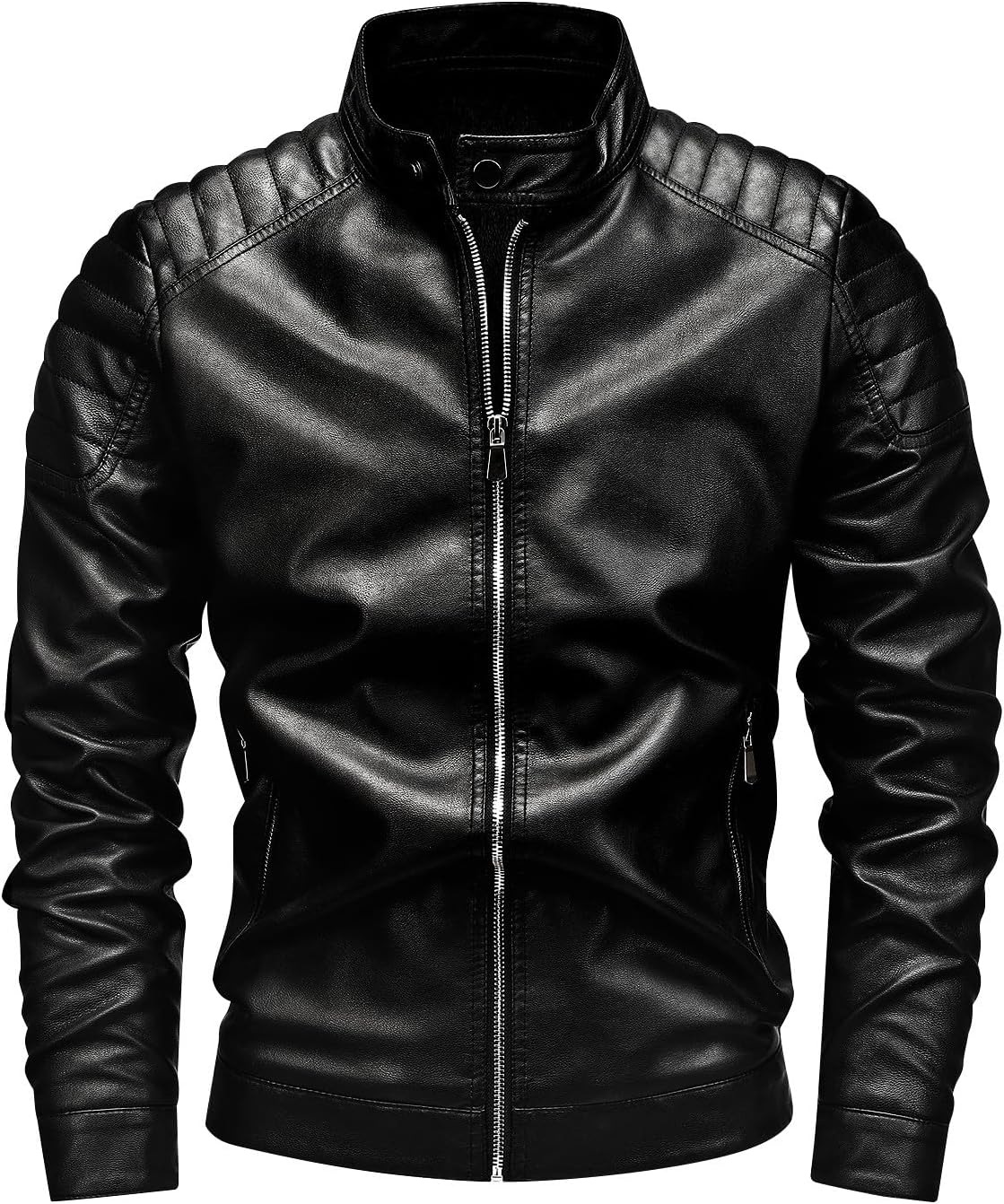 Fairylinks Leather Jacket Men Black Slim Fit Motorcyle Lightweight