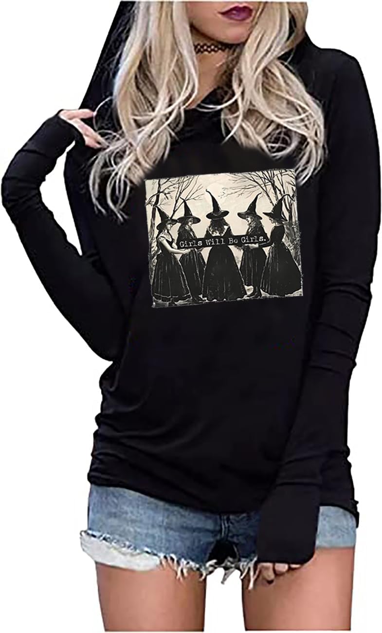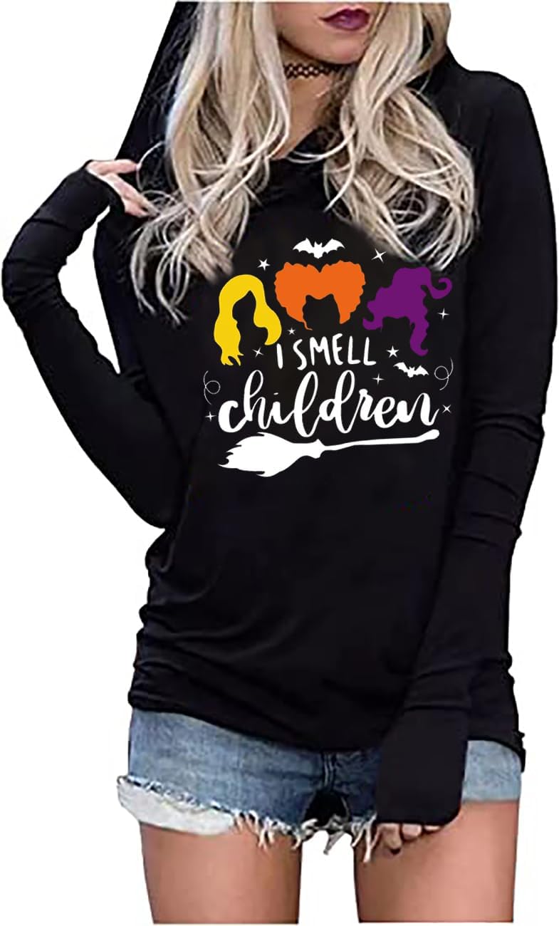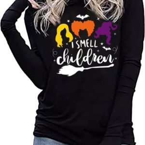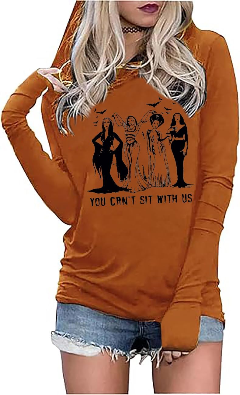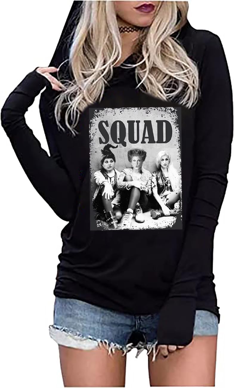 Sanderson Sister Squad Hoodie T Shirt Halloween Graphic Tees for Women Hocus Pocus Funny Shirts Fall Casual Long Sleeve Pullover Tops