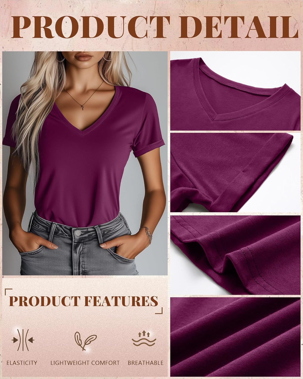 “These shirts are incredibly comfortable and fit perfectly. The material is soft and breathable, making them perfect for summer. The V-neck is just the right depth—flirty but classy. I’ve worn them to brunch, on set, and even dressed one up with a blazer for a meeting.