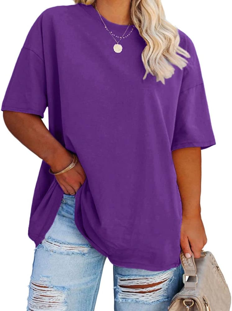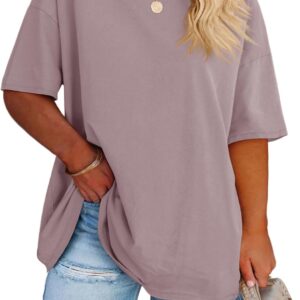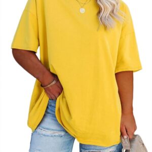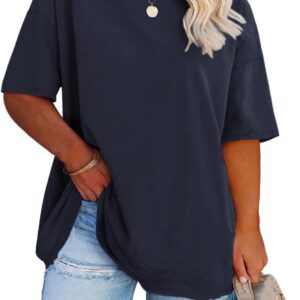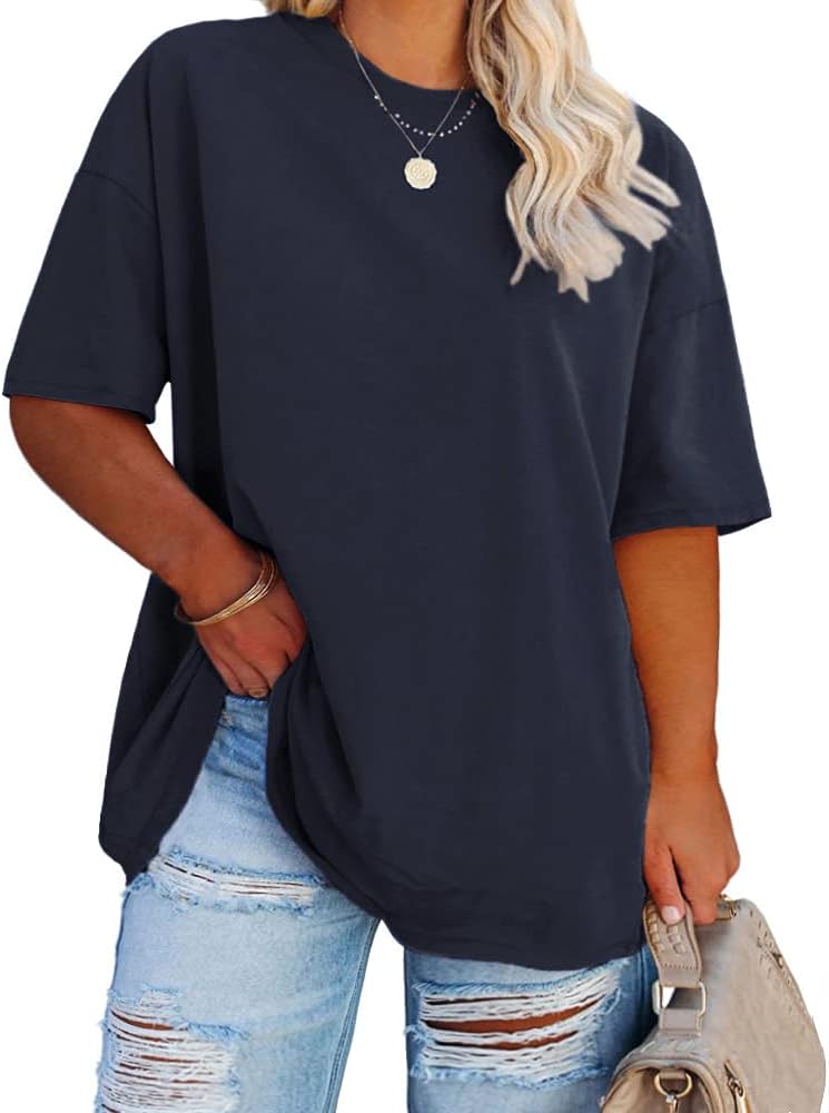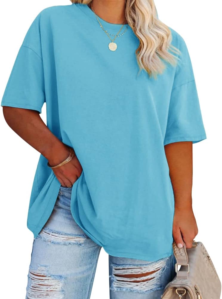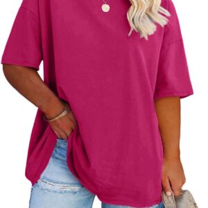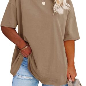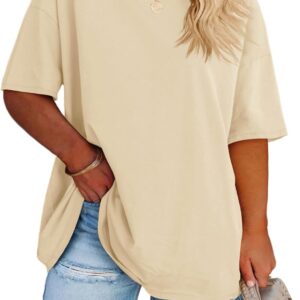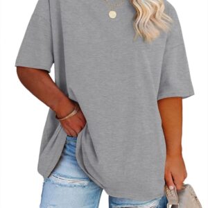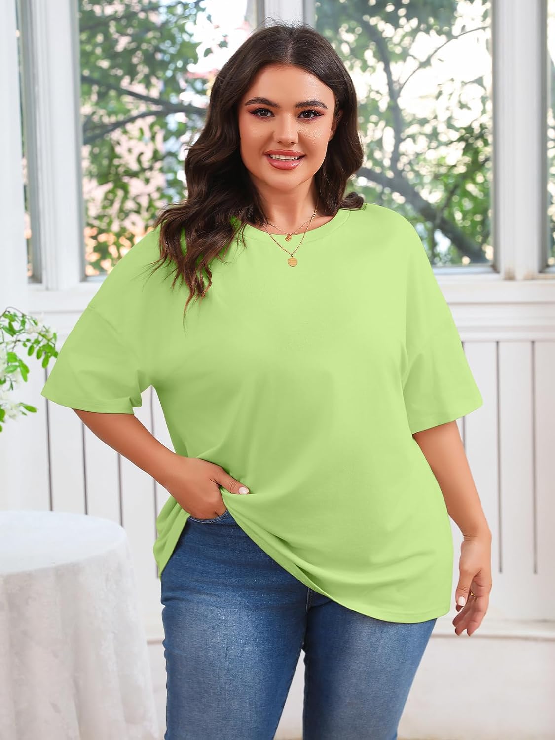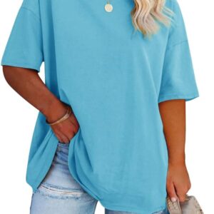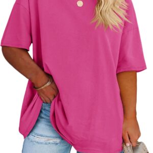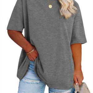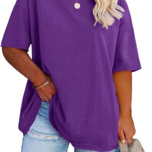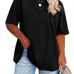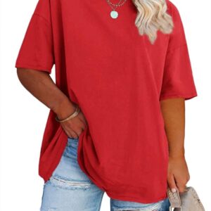 Fisoew Women's Plus Size T Shirts Oversized Tees Half Sleeve Crew Neck Cotton Tunic Tops