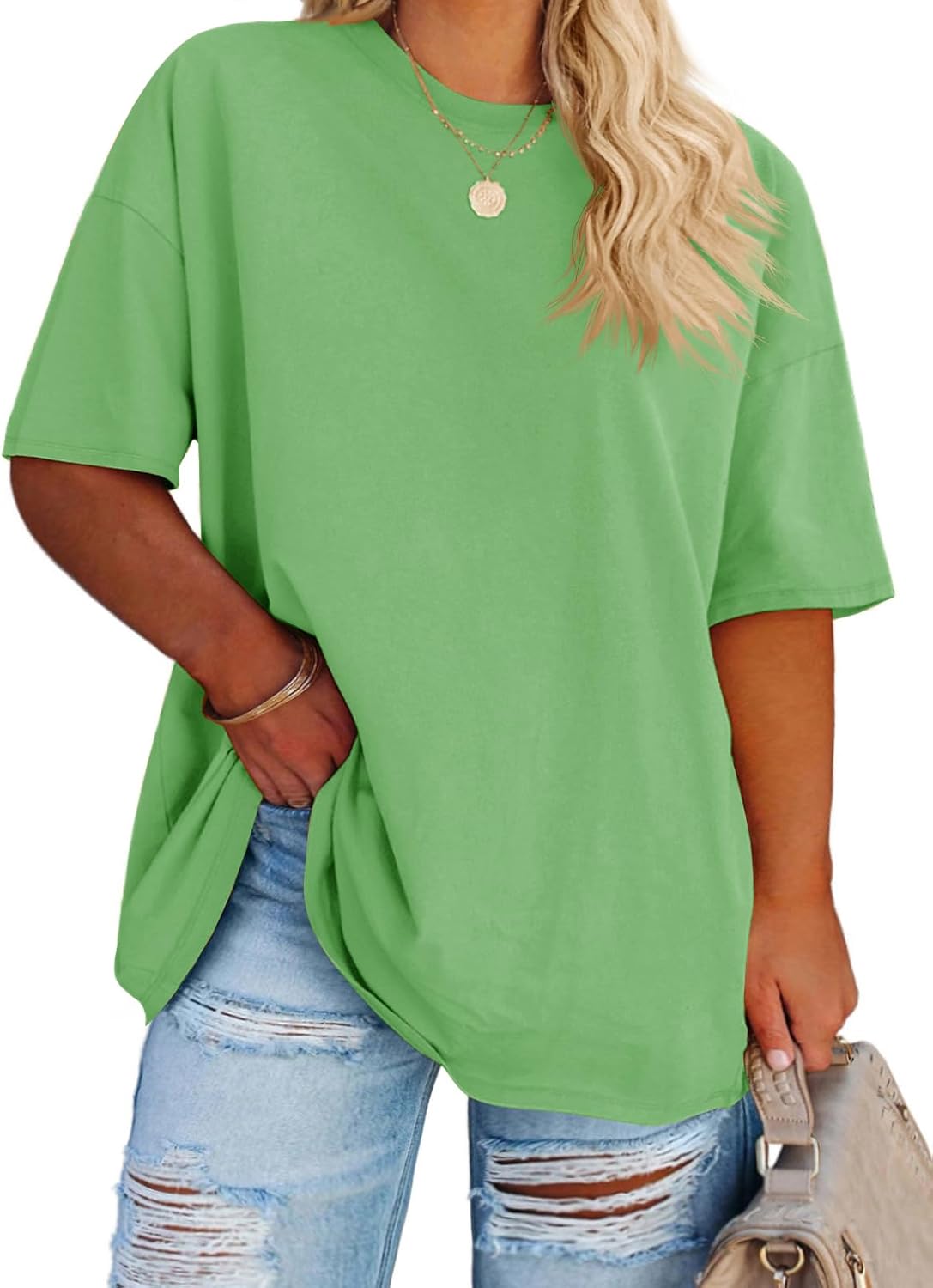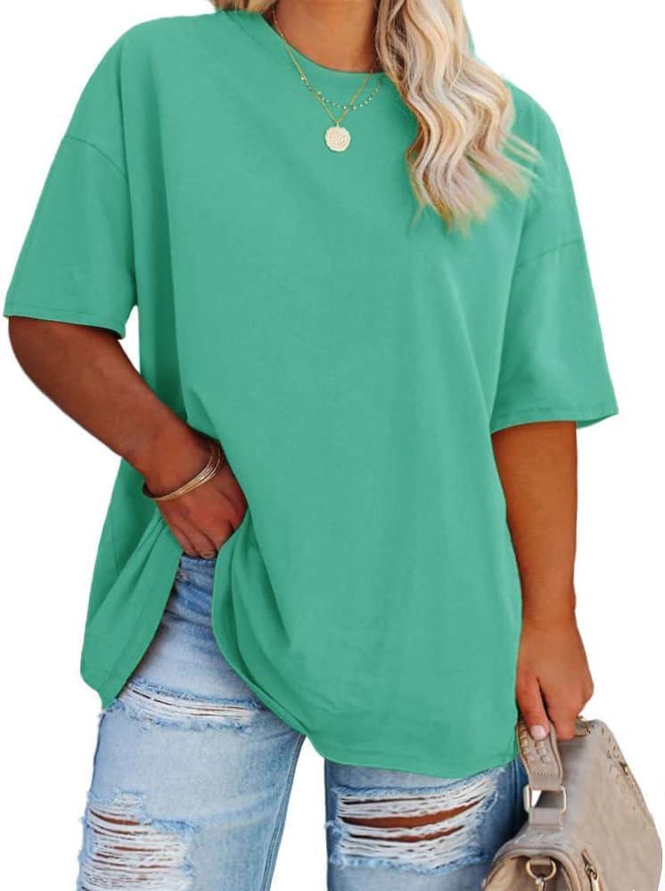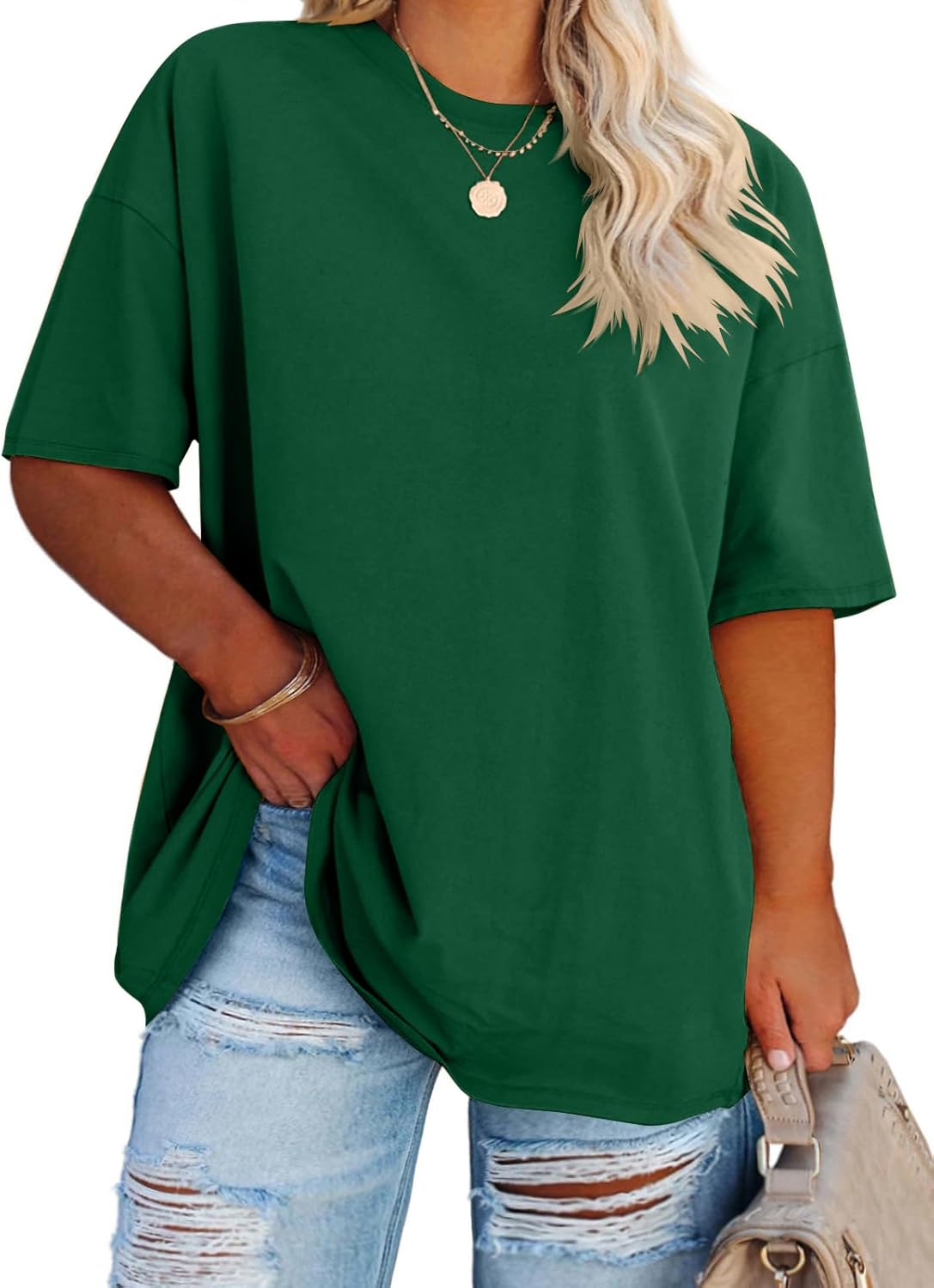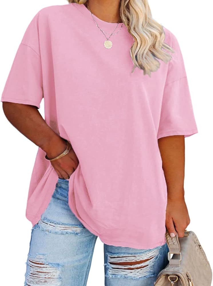 Fisoew Women's Plus Size T Shirts Oversized Tees Half Sleeve Crew Neck Cotton Tunic Tops