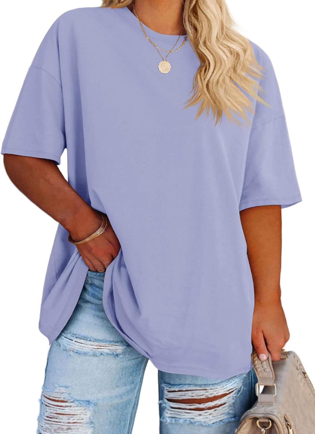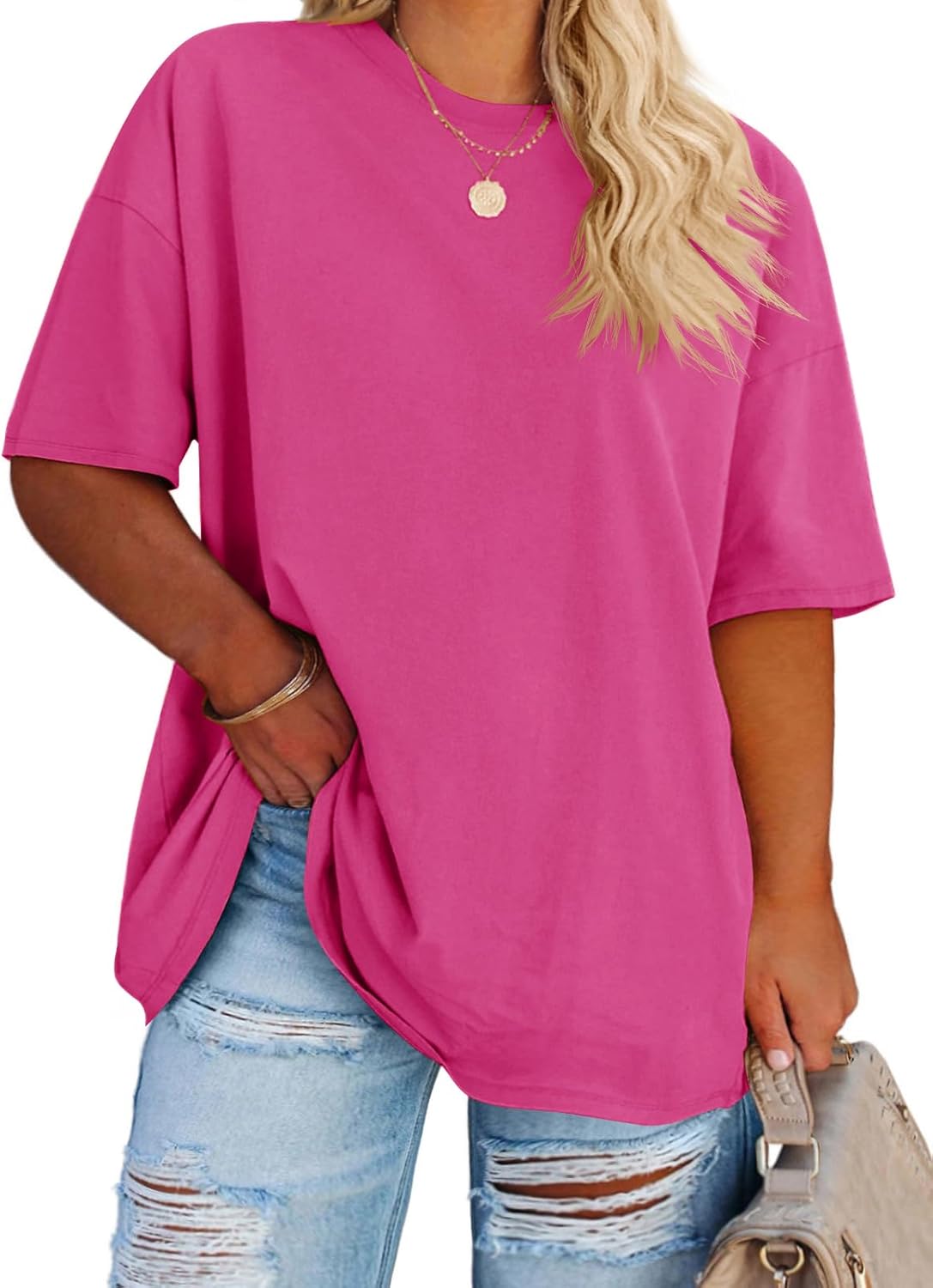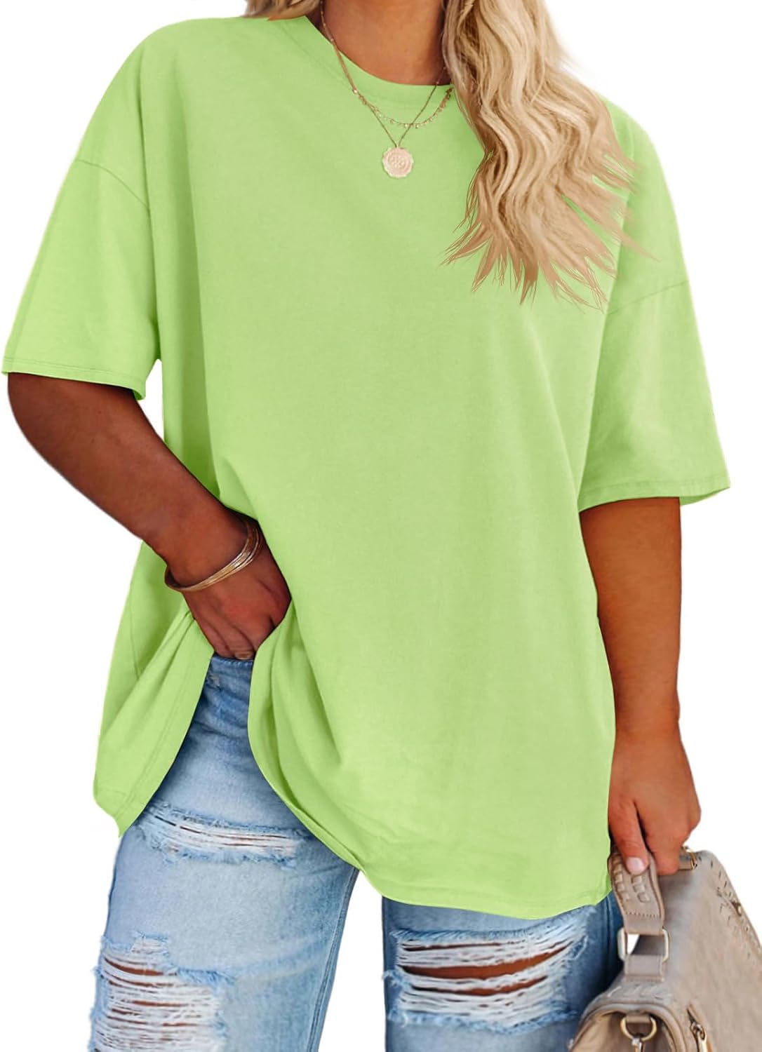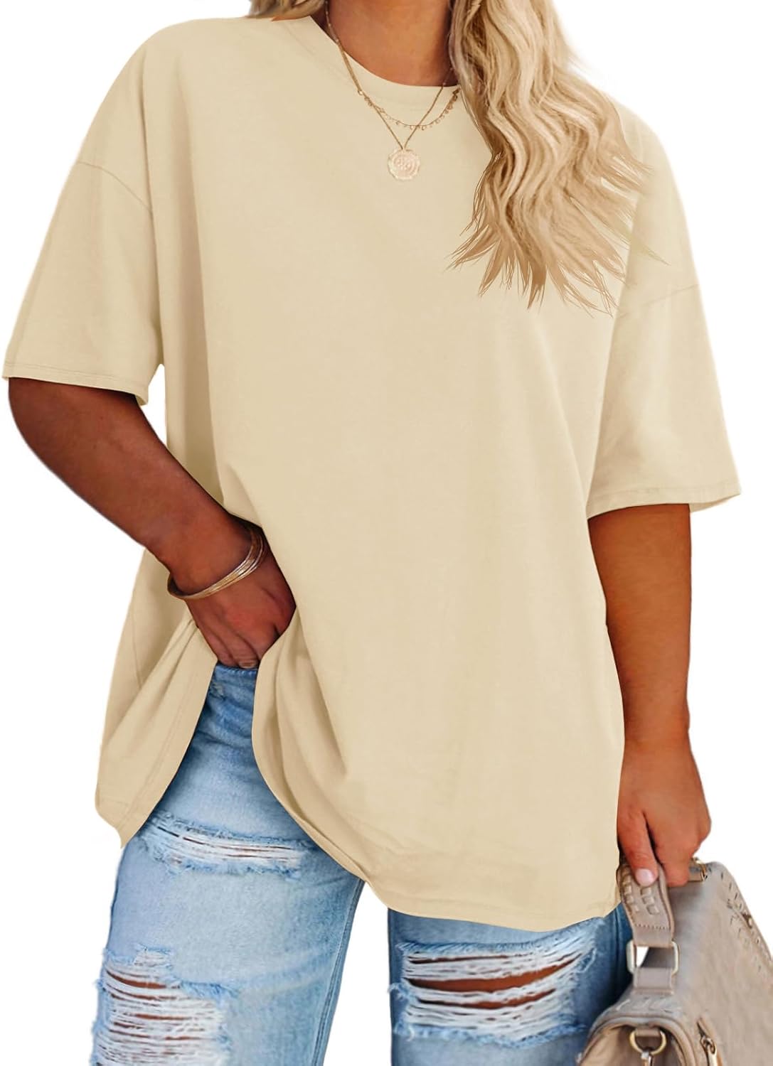 Fisoew Women's Plus Size T Shirts Oversized Tees Half Sleeve Crew Neck Cotton Tunic Tops