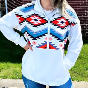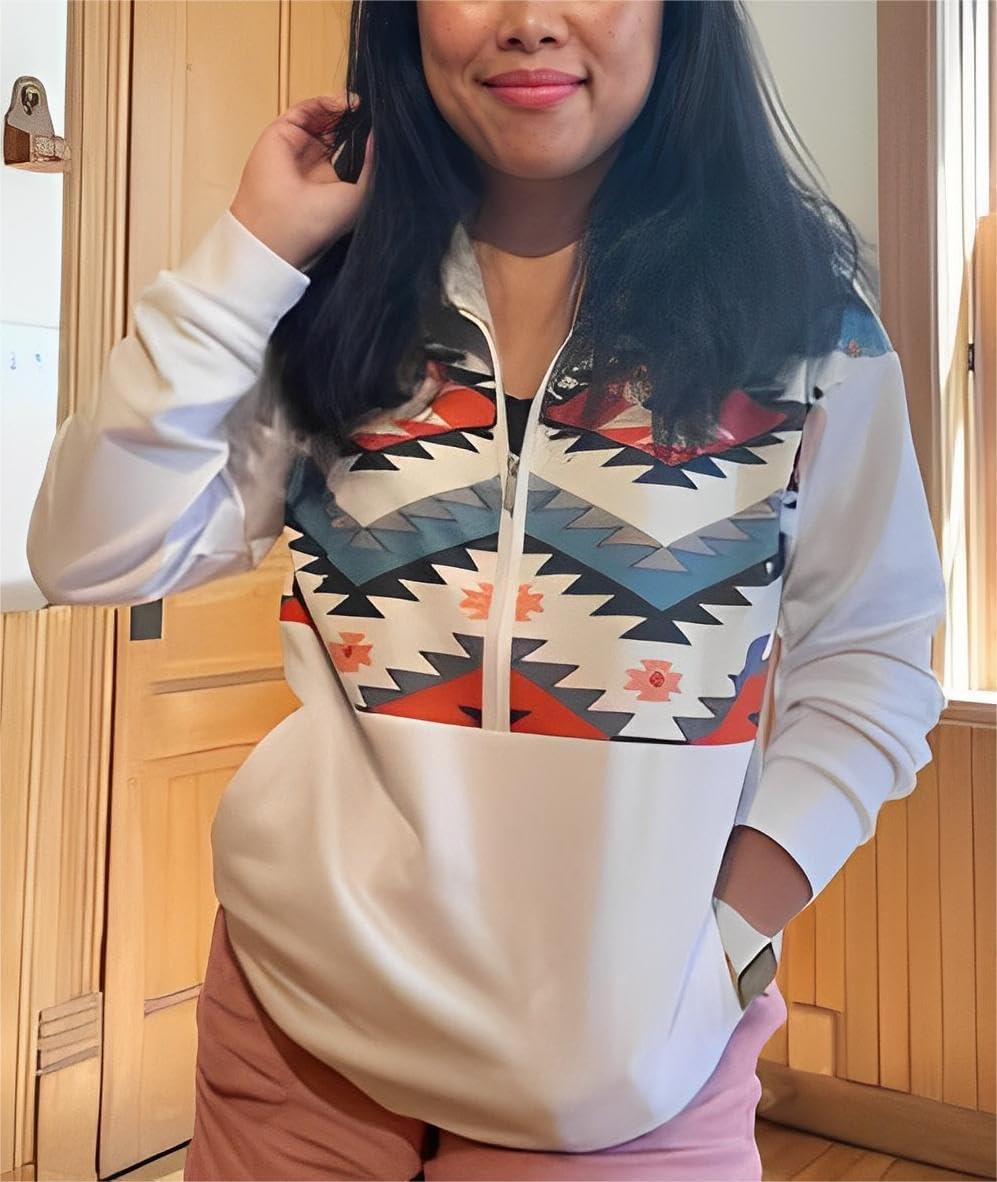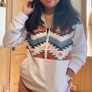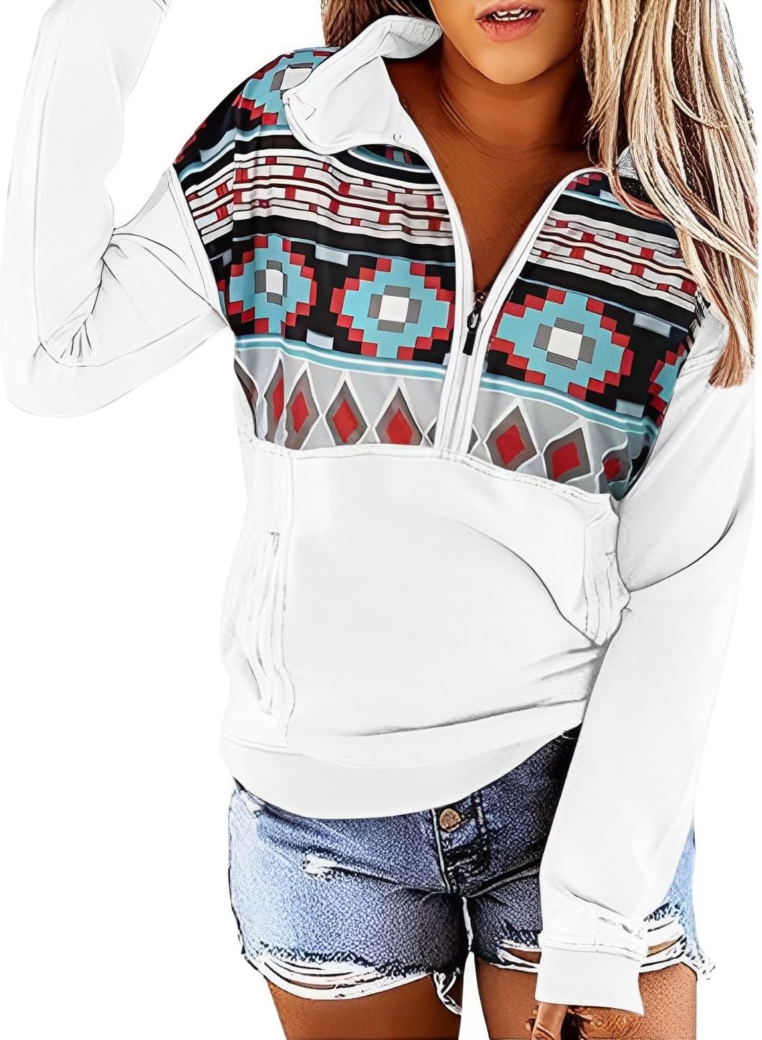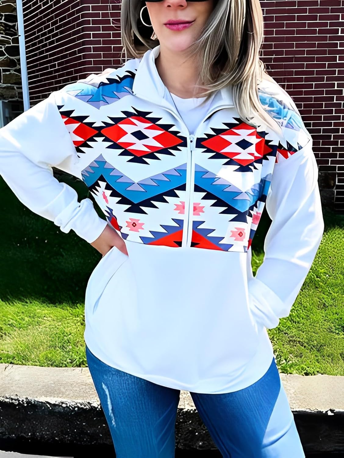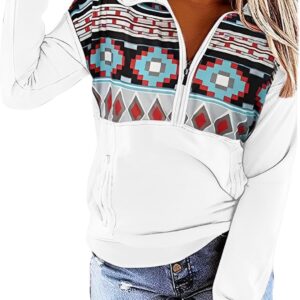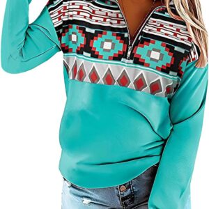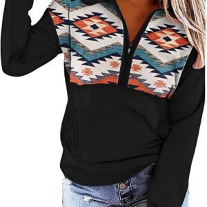 Fronage Women’s Half Zip Sweatshirt Western Aztec Sweater, Casual Long Sleeve Mexico Ethnic Graphic Pullover Tops