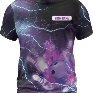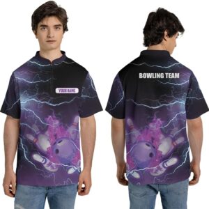 Stylish and Functional Bowling Jersey Step onto the lanes in style with this all-over print bowling jersey, designed for both comfort and performance. Perfect for bowling tournaments, casual games, or social events, this jersey ensures you stay cool and confident throughout the day. High-Quality Material: Crafted from bird-eye pique fabric with 3-5% spandex, offering quick-dry, moisture-wicking, and breathable properties to keep you comfortable even during intense games. Vibrant Design: Sublimation printing ensures vibrant and fade-resistant patterns, making your jersey stand out. Functional Fit: Features short sleeves and a 1/4 zipper sash collar for an athletic yet professional look. Durable Construction: Double-stitched hems enhance durability for long-lasting wear. Available Sizes: Comes in sizes S to 5XL, offering a comfortable fit for everyone. Versatile and Stylish This bowling jersey pairs effortlessly with slacks for a polished appearance or jeans and shorts for a casual vibe. Ideal for bowling sessions, league events, or everyday wear. Care Instructions Machine washable for easy maintenance. Turn inside out, wash with cold water, and air dry or tumble dry on low to retain quality and vibrant colors. Elevate Your Bowling Gear Upgrade your game with this stylish and functional bowling jersey. Order yours today and experience the perfect blend of comfort and style on the lanes.