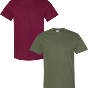 - 50/50 cotton/poly (Blackberry, Dark Heather, Heather Military Green, Heather Red, Heathered Sapphire, Lilac, Neon Blue, Neon Green, Russet, Sunset, Tweed, Safety Green, Safety Orange, Safety Pink)