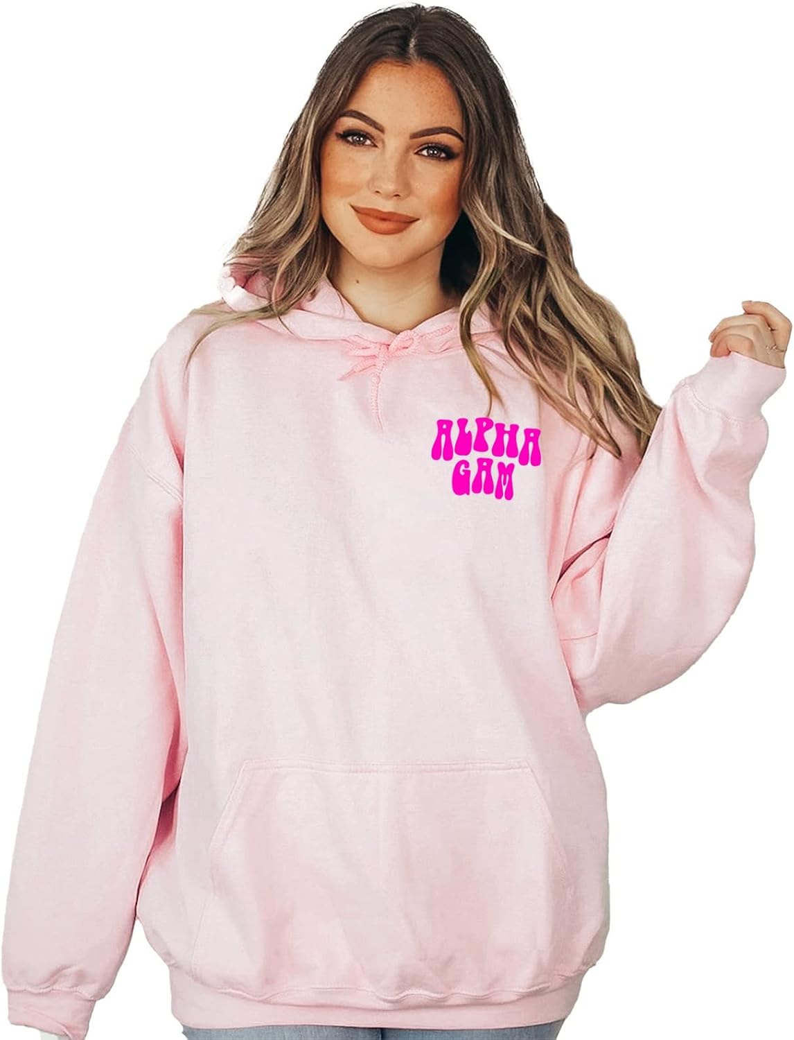 Go Greek Chic Alpha Gamma Delta Retro Floral Pink Hoodie – Alpha Gam