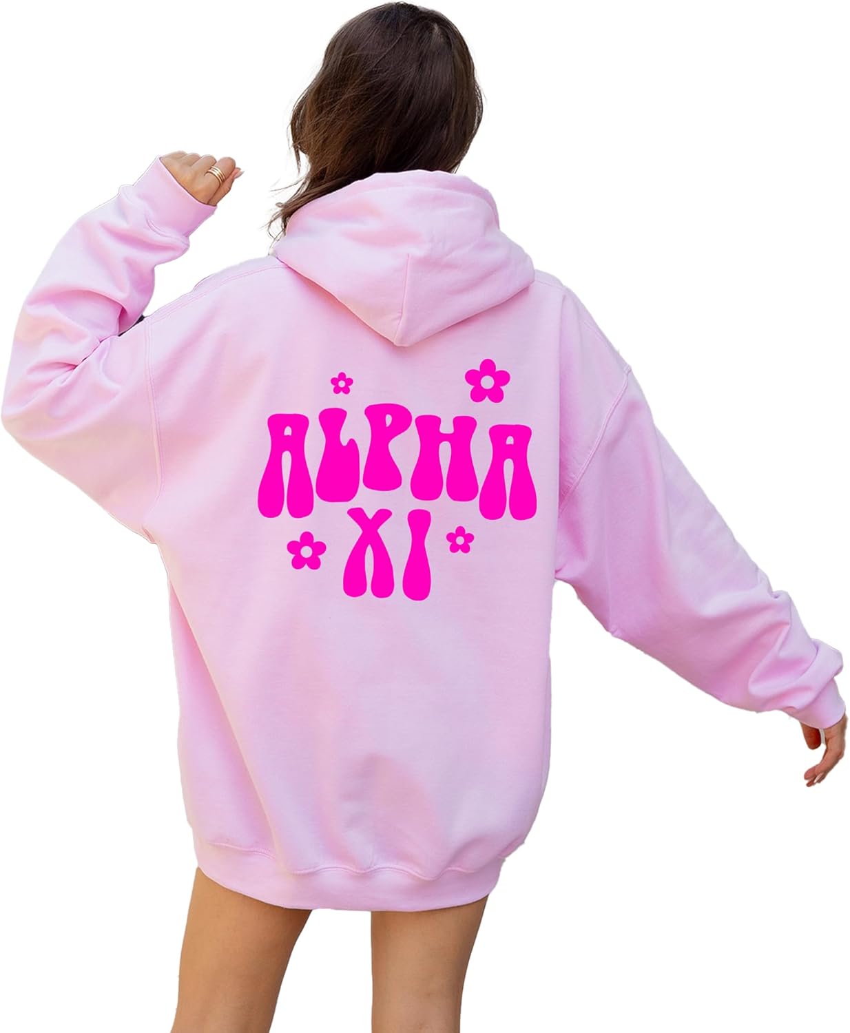 Go Greek Chic Alpha Xi Delta Retro Floral Pink Hoodie – Alpha Xi