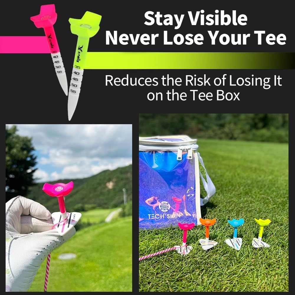 Golf Tees Adjustable Height 35mm-55mm NEON Plus 4pcs Plastic Tees for Maximum Driver Distance, Accuracy & Low Spin, 4 Colors Set