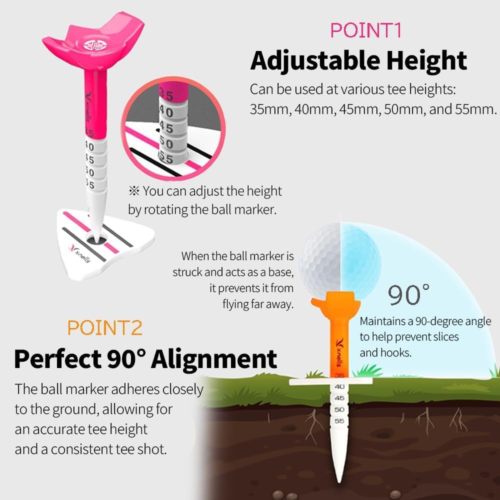 Golf Tees Adjustable Height 35mm-55mm NEON Plus – Plastic Tees for Maximum Driver Distance, Accuracy & Low Spin Orange, 2 Counts (1+1 Deal)