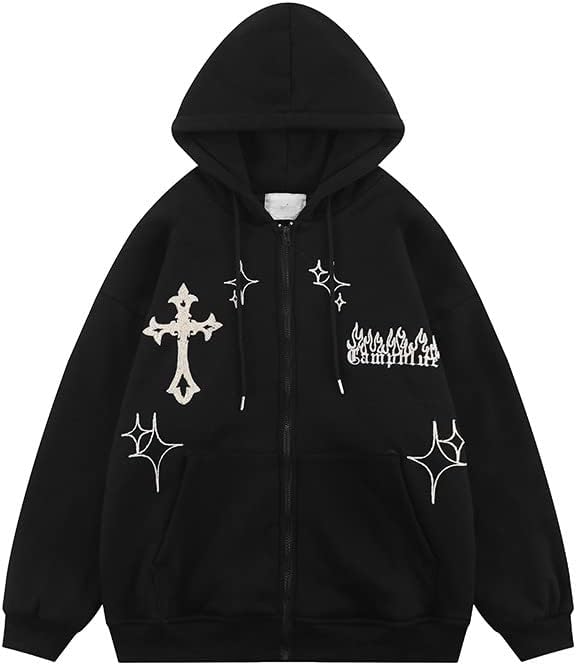 Features: Women's retro hoodies, black men's retro hoodies, long sleeves, cross patterns, butterflies, skull printed tops, solid color super Dalian hoodies, brown zippered hoodies and zippers, two pockets, loose fit, irregular length, 90's fashion y2k punk style, aesthetic sweatshirts retro, 90's electronic girls' pullover street wear.