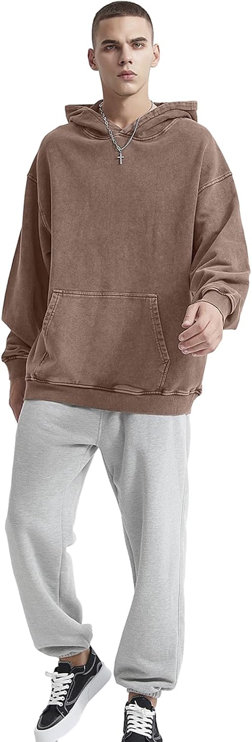 KEEPSHOWING Mens Oversized Hoodies Vintage Hoodie Couples Pullover Acid Wash Hoodies for Men Streetwear Sweatshirts