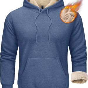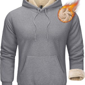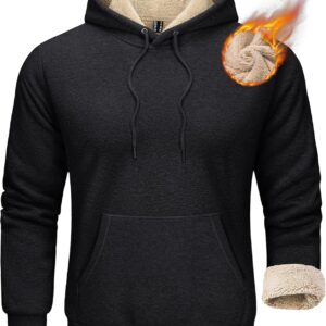 KEFITEVD Men’s Pullover Hoodie Thick Sherpa Lined Hooded Sweatshirt Winter Warm Fleece Hoodie Athletic Workout Sweatshirts