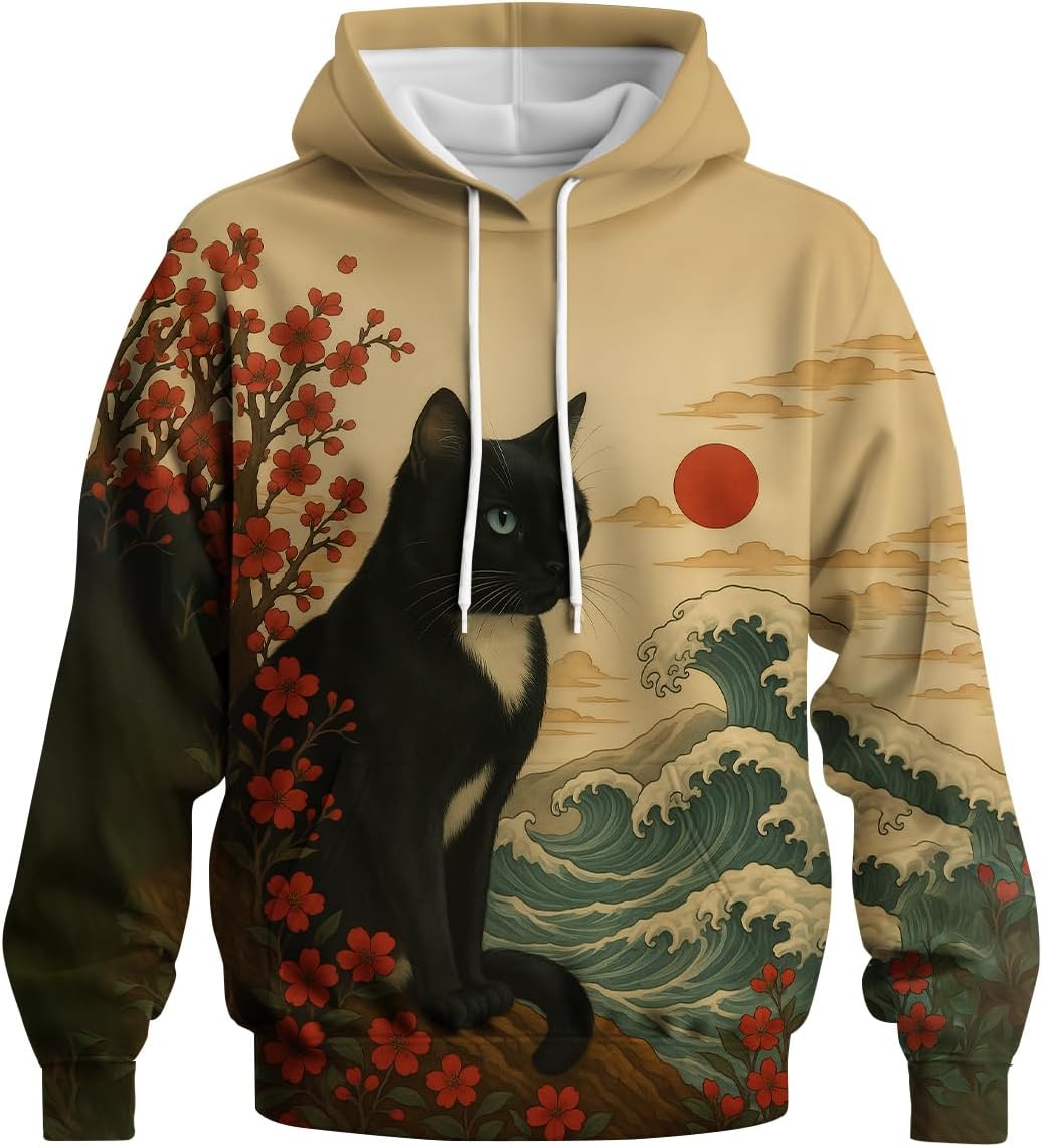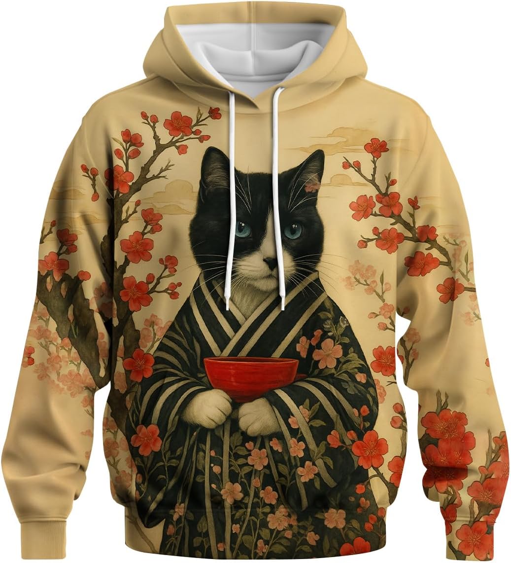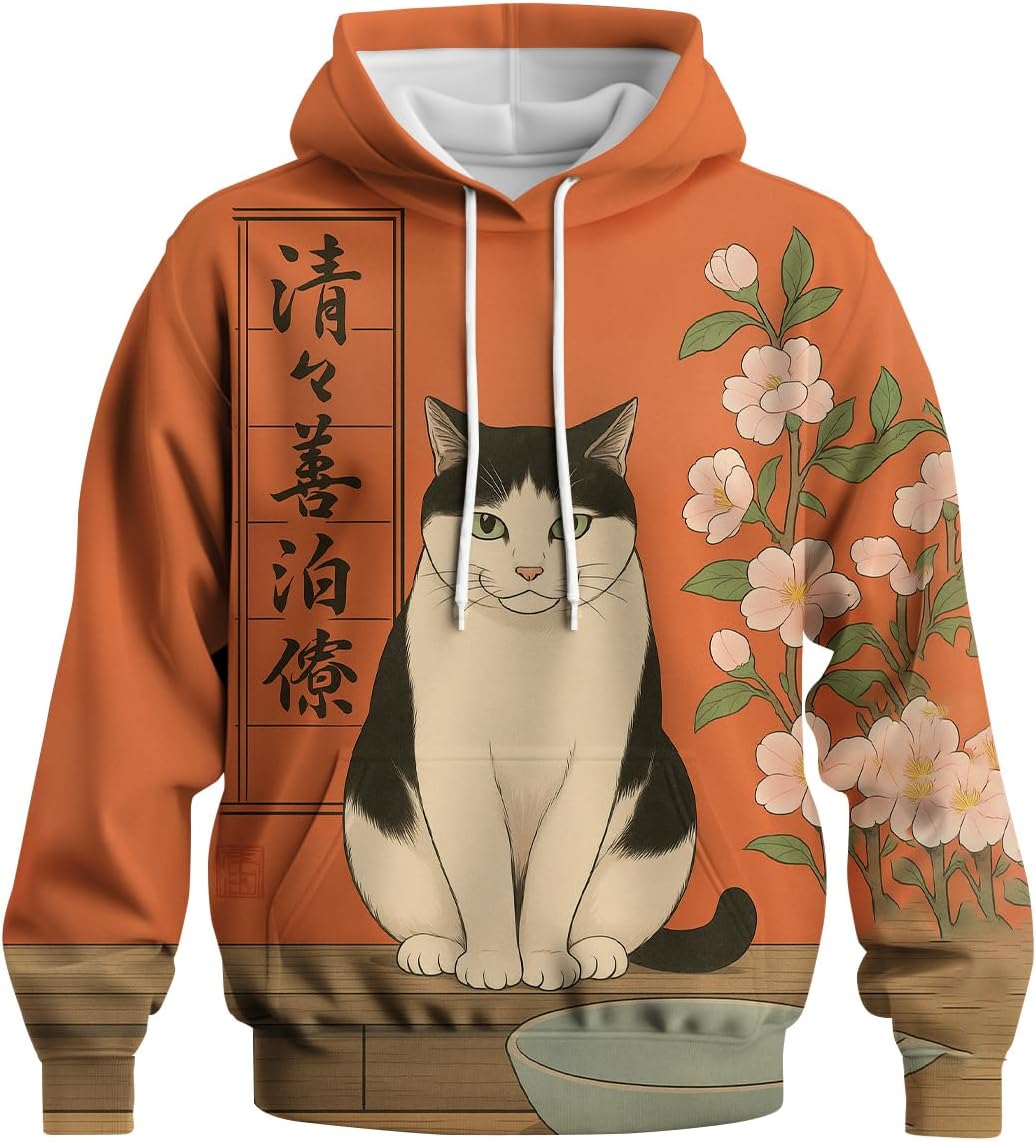 - Perfect for cat lovers, Japanophiles, and fans of artistic streetwear, this Japanese-style cat Hoodie is ideal for casual outings, anime conventions, cultural festivals, or as a standout piece in everyday fashion. Whether you’re attending a cherry blossom viewing, exploring a summer matsuri, or gifting someone who adores traditional Asian art, this tee blends style, personality, and cultural flair effortlessly.